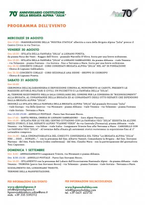 From 30 August to 1 September in Lignano, celebrations are held for the 70th anniversary of the constitution of the "Julia" Alpine Brigade.