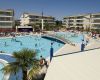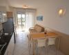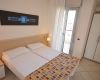 The apartment is east and west oriented and it is composed of spacious living-room with double divan-bed and balcony to the east with view on the common green areas and on the pool area, kitchenette, one bedroom with double and single bed and balcony to the eastside, one bedroom with double bed and balcony to the westside, bathroom with shower cabin and hairdryer on the wall, storebox and technical plants on the balcony. The garage is located on the ground floor.