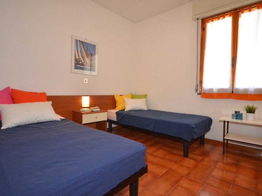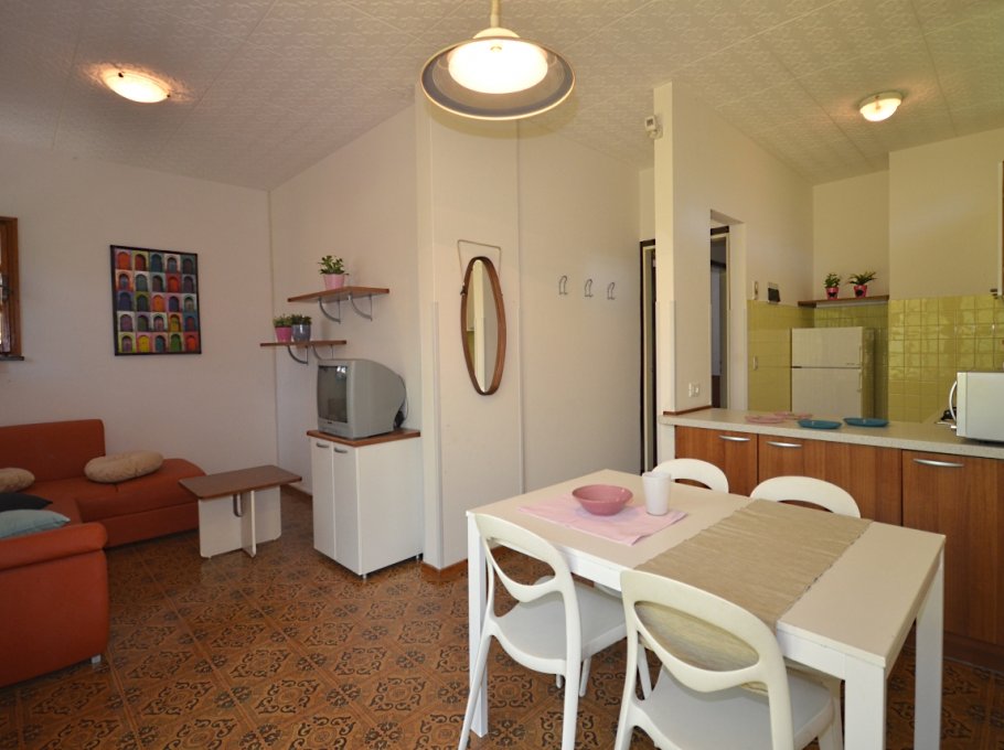 FOUR-ROOM-APARTMENT for 5-7 persons composed of: living-room with double divan-bed or 2 single divan beds, 1 bedroom with double bed, 1 bedroom with 2 single beds, 1 bedroom with single bed, kitchen corner, free washing-machine in common use, bathroom, terrace, garden. Air-conditioning.
