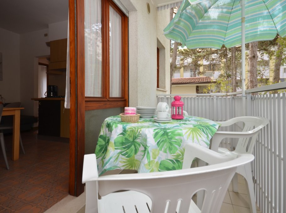 Building of 9 units, located in the green of the pine wood in a quiet area just 80 meters away from the beach, some apartments on the ground floor have a private and fenced garden while the others have a comfortable habitable terrace. Furnished in a simple and functional way, they are equipped with air conditioning, safe, TV, large fridge with cell and numbered parking.