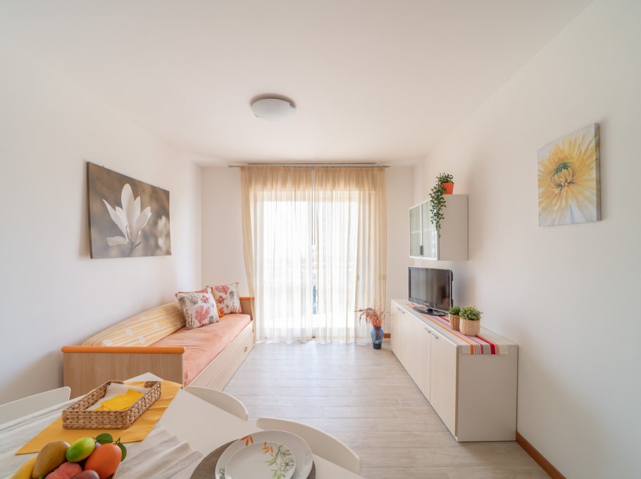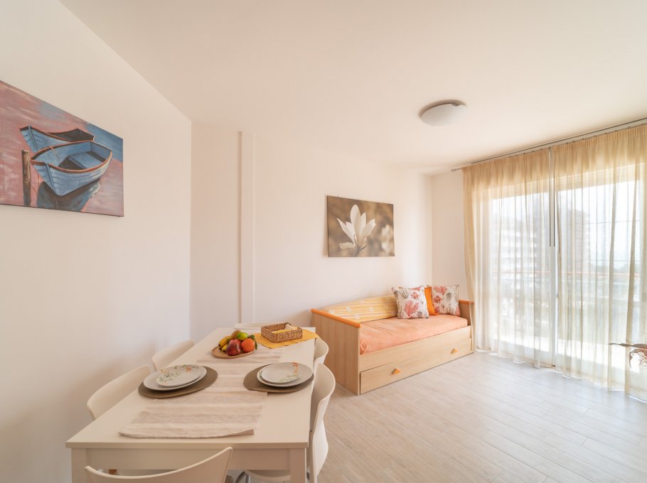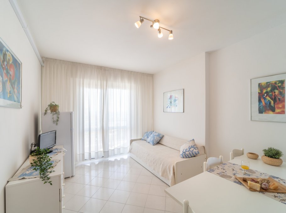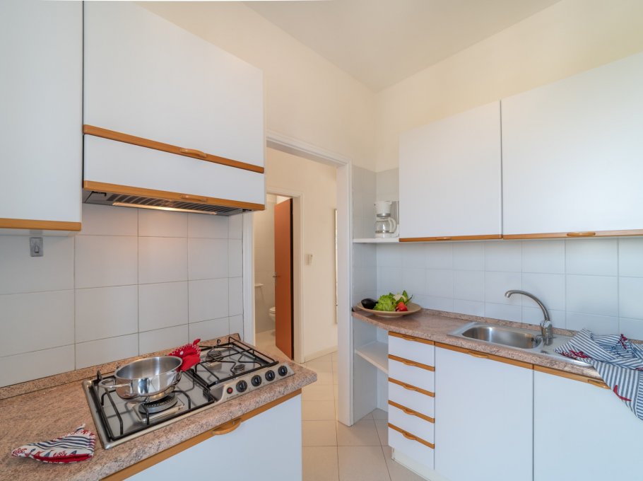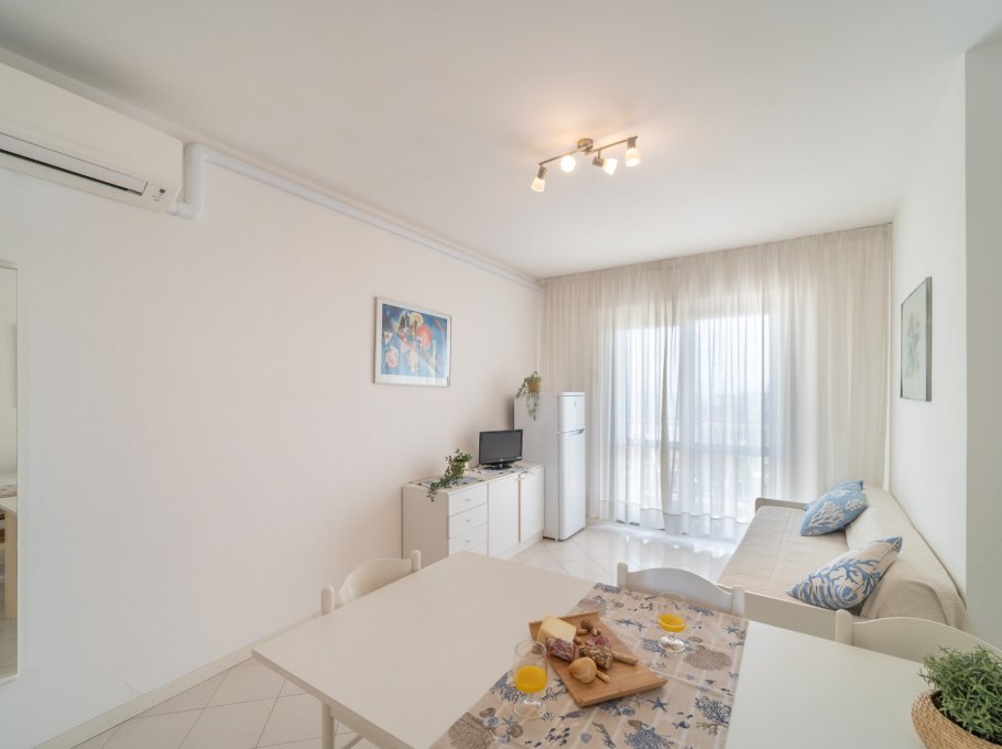TWO-ROOM-APARTMENT for 2-4 persons composed of: living-room with double divan-bed, 1 bedroom with double bed, kitchen corner, bathroom, balcony. Air conditioning.