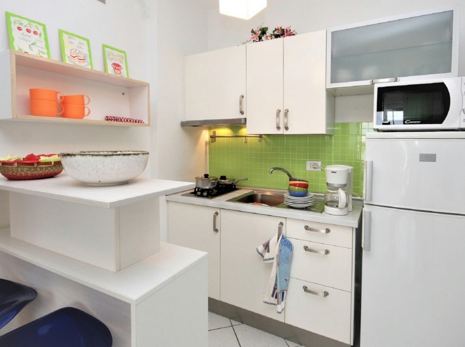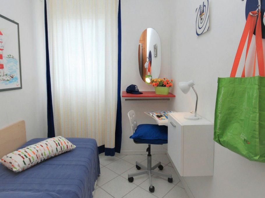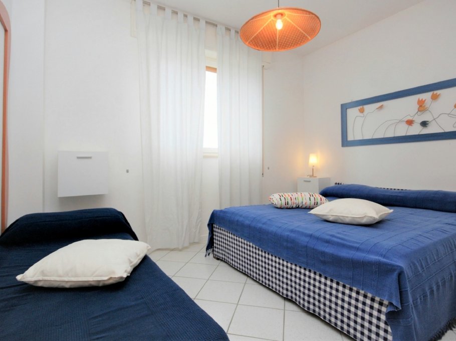 THREE-ROOM-APARTMENT for 4-5 persons composed of: living-room with single divan-bed, 1 bedroom with double bed and single bed, 1 bedroom with single bed, kitchen corner, bathroom, balcony.