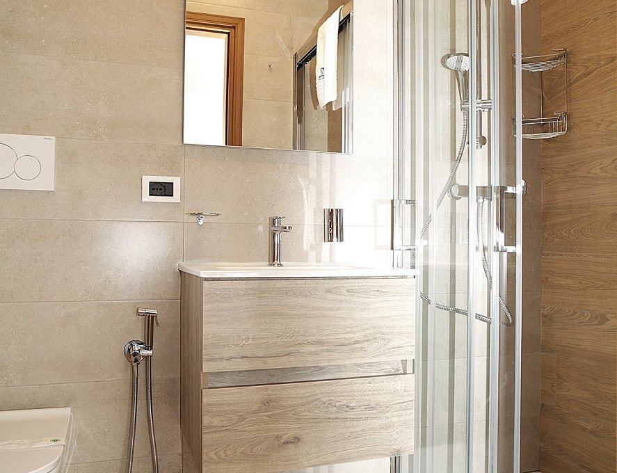 salle de bains avec cabine de douche