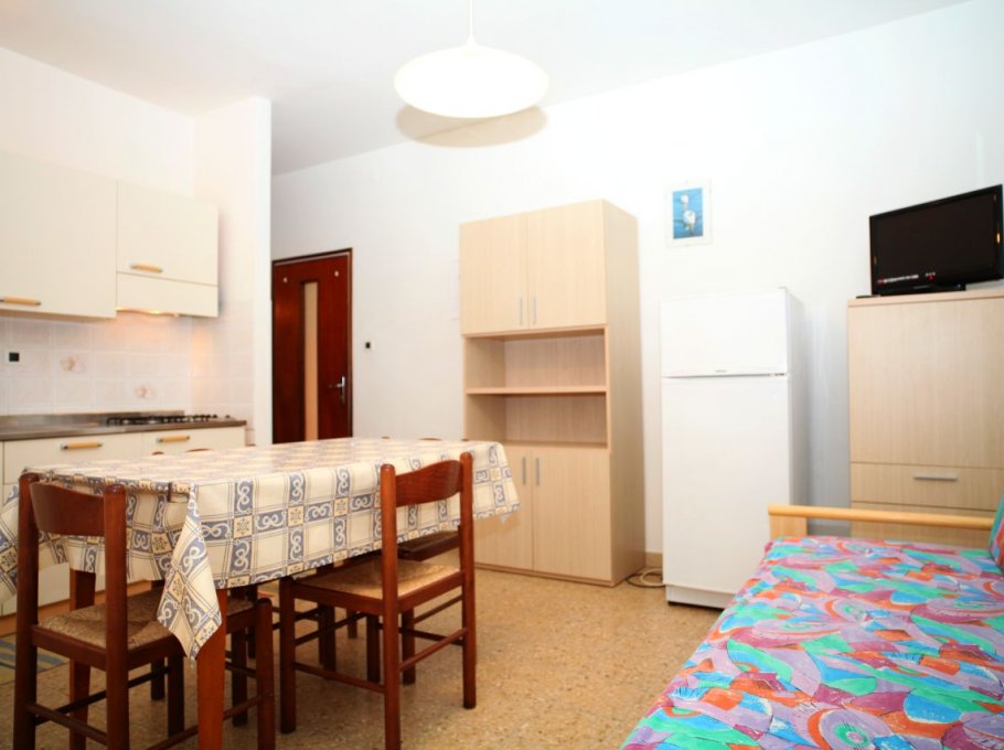 3-storey building just 100 meters from the beach, a few steps from the pedestrian shopping area and the port of Sabbiadoro. Supermarket and shops in the immediate vicinity. Holuse with 14 apartments of different types, simple and functional furnished with terrace. Air conditioning and parking-places as long as available.