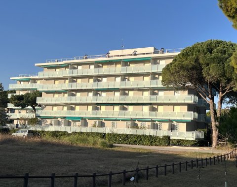 Apartment in a three-family villa in the green of Lignano Riviera, First Floor with 1 double bedroom, 1 bedroom with 2 beds, living room with open kitchen + sofa bed, 1 bathroom, TV, air conditioning, washing machine, dishwasher, microwave, terrace, car post covered, common garden.