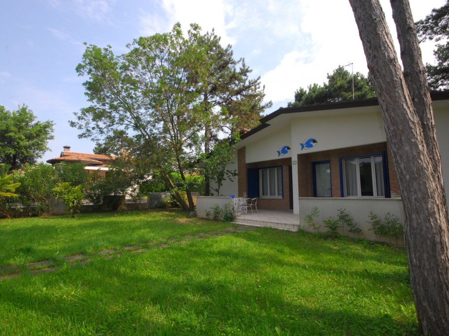 Spacious single villa with a great, well-kept and fenced garden and a private parking place, in a quiet and green position at Lignano Pineta, at around 700m from the beach.