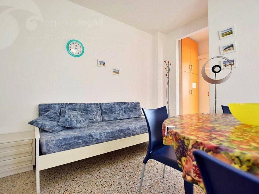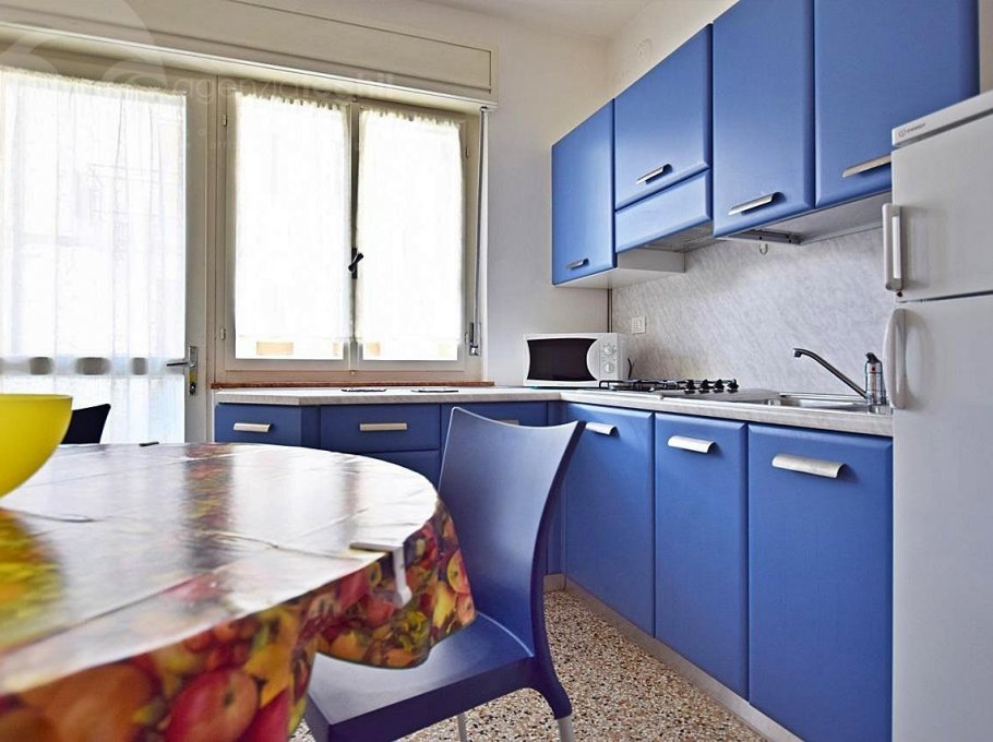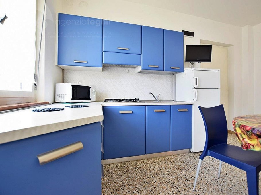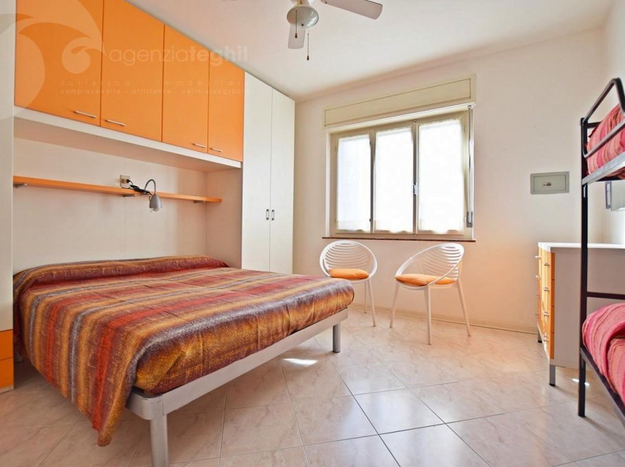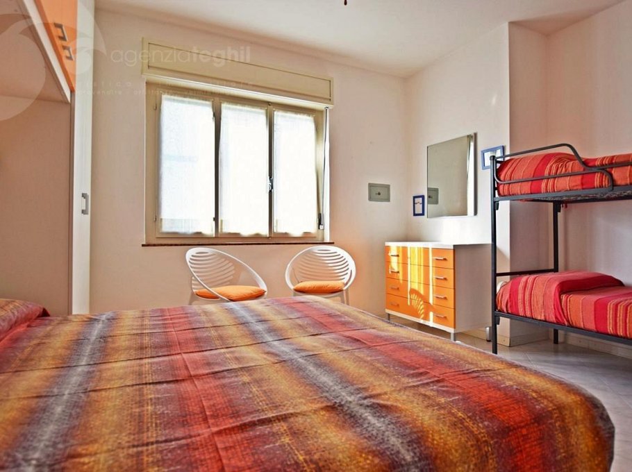 Type B: 4/5 persons - Apartment on 1st floor with one room with double bedroom + bunk-bed ., living-room with single sofa, Tv (with Italian programs only) and balcony. Kitchenette with induction hob, equipped with a 240-liter refrigerator (separate freezer compartment) and microwave oven. Windowed bathroom with shower-box and washing-machine.