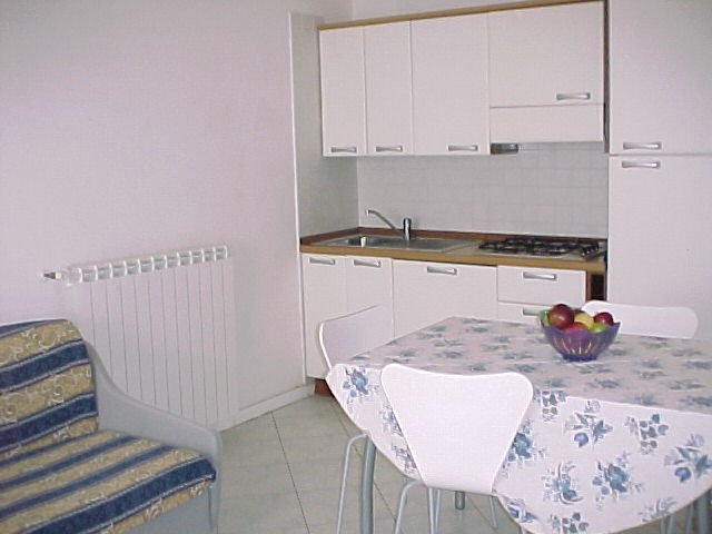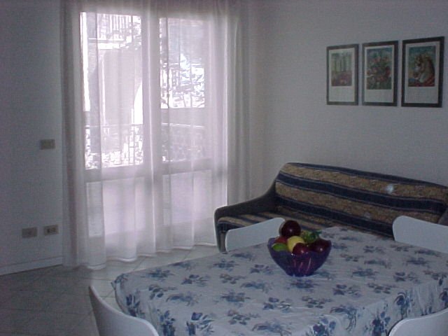 L’appartement, situé au rez-de-chaussée entièrement rénové et est composé de: salle de séjour avec kitchenette et un canapé-lit, chambre double, bain avec douche, machine à laver, lave-vaisselle, grande terrasse. Climatiseur. Television.