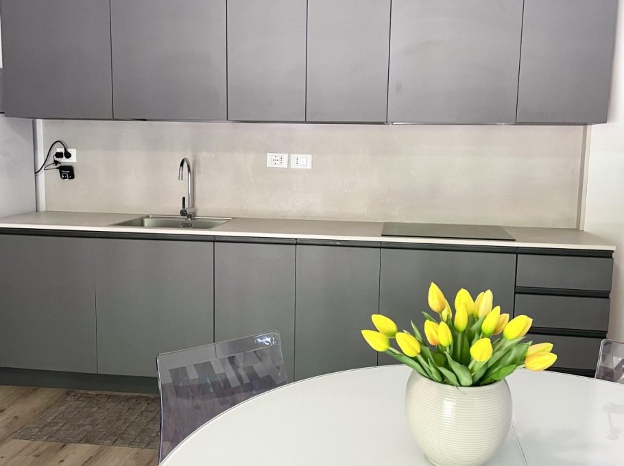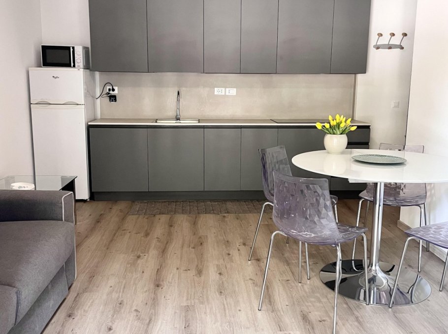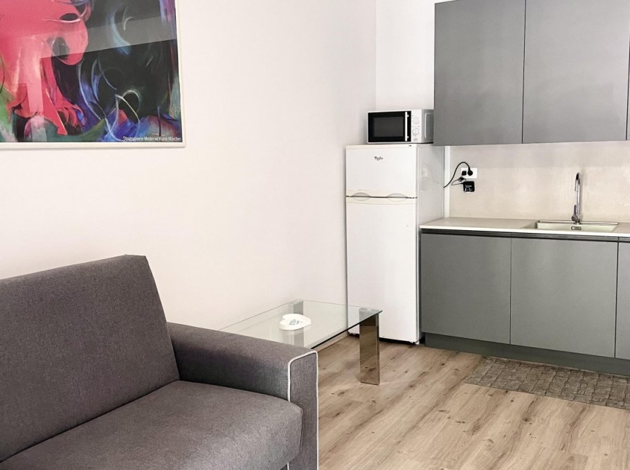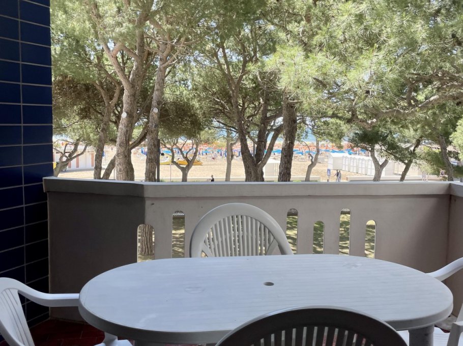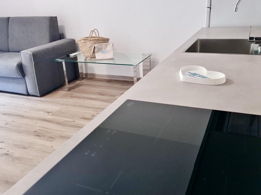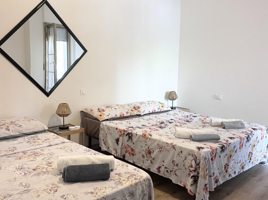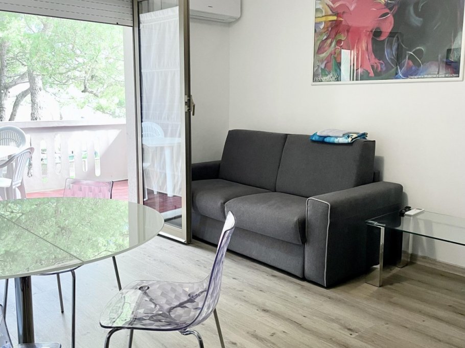 First floor apartment composed of living room with double sofa bed and kitchenette, bedroom with two double beds, bathroom with shower, air conditioning and terrace with sea view.
