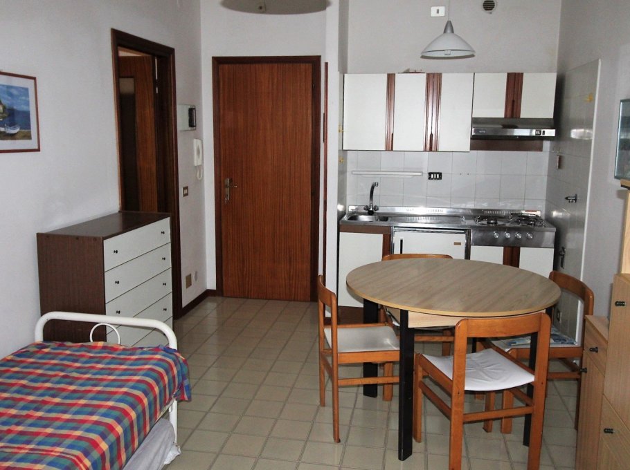 Palais in location tranquille et centrale, à mt. 200 de la mèr, près des boutiques et supermarkets. Apartement au 3 etage composée d’un séjour avec divan lit a deux places, rèpart cuisine, chambre matrimoniale, bain avec la douche/box, grande terrasse. Elevateur.