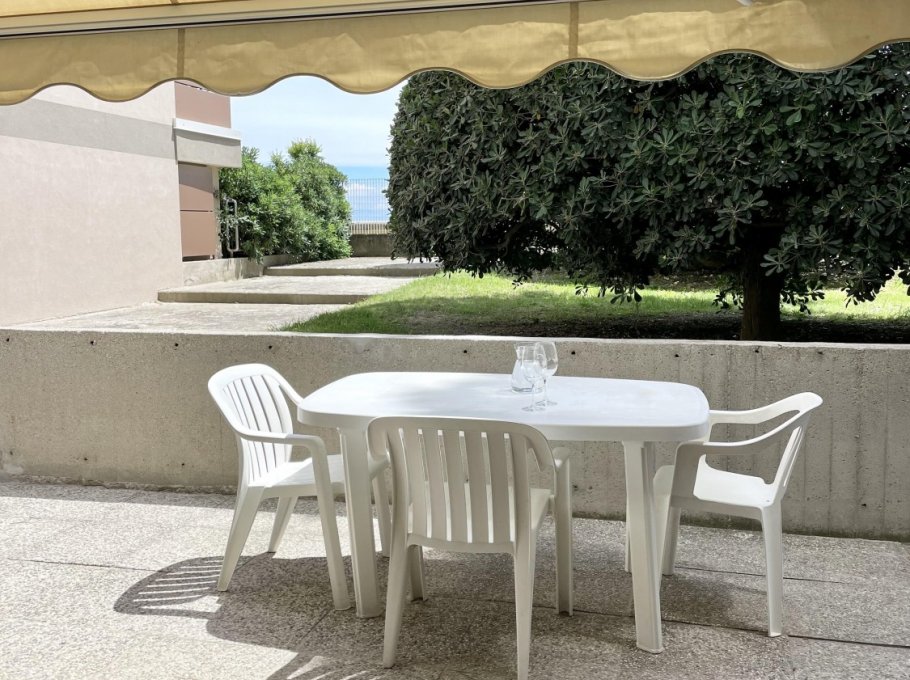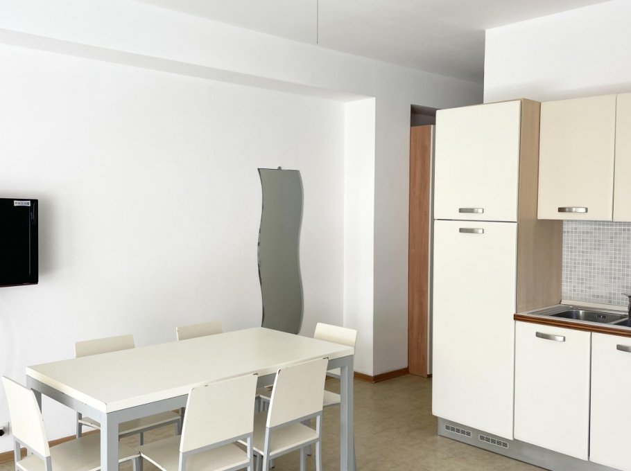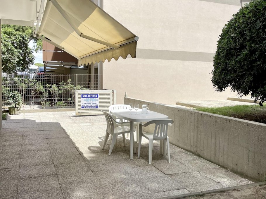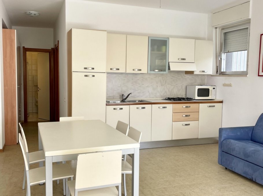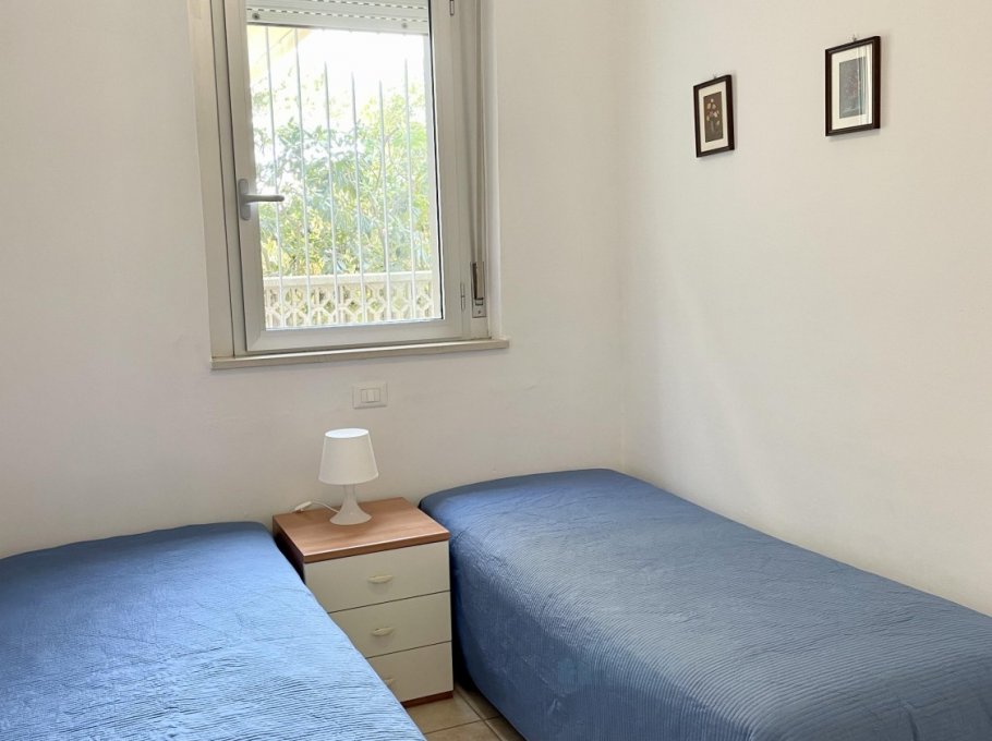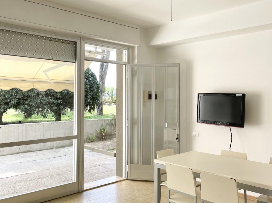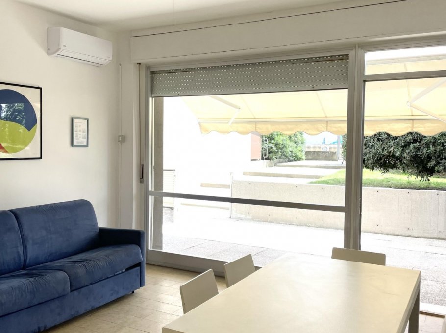 Ground floor apartment with garden and air conditioning composed of living room with double sofa bed, kitchenette, TV, bedroom with double bed, bedroom with two single beds, bathroom with shower cubicle and numbered parking.