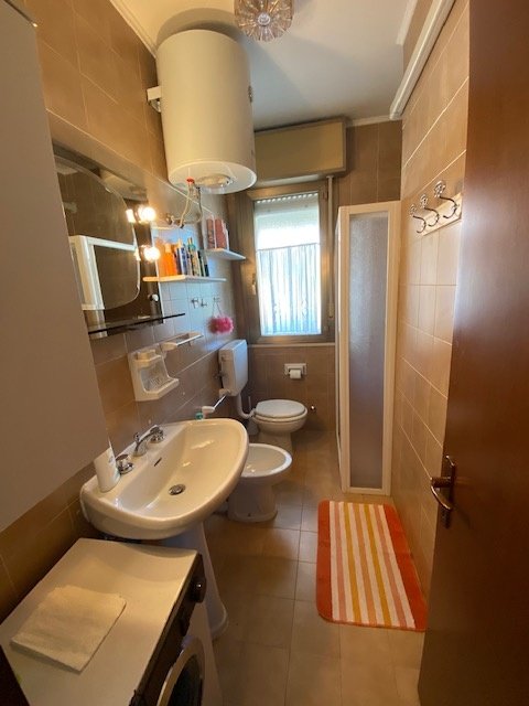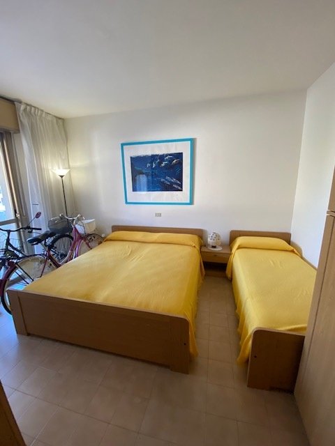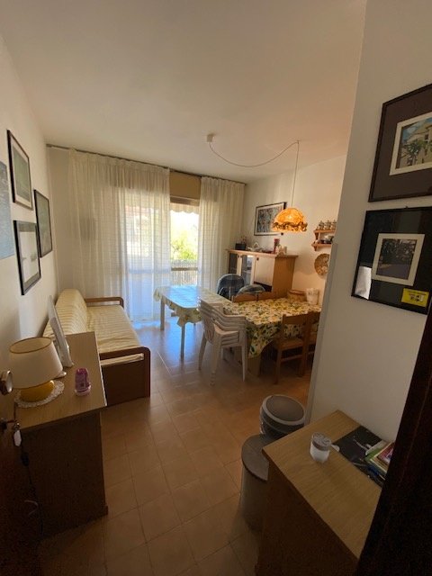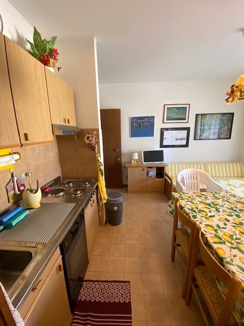 Appartamento bilocale situato al primo piano esposizione est, composto da soggiorno-pranzo con cottura e divano letto, bagno con box doccia, camera matrimoniale a tre letti, lavatrice, aria condizionata e lavatrice, ampio terrazzo con tenda da sole, posto auto numerato .