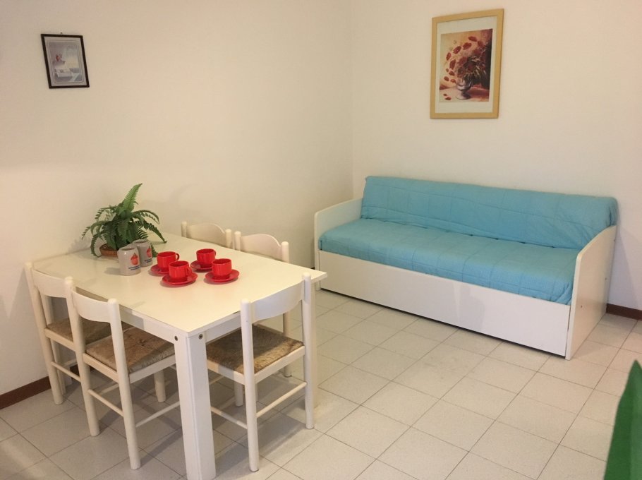 Appartamento al primo piano di piccola palazzina in zona ben servita e tranquilla di Lignano Pineta a 250 metri dal mare, composto da una camera matrimoniale, bagno con doccia, ampio soggiorno-pranzo con zona cottura ed un divano letto doppio, aria condizionata, ampio terrazzo angolare abitabile e posto auto numerato, zona tranquilla.-
