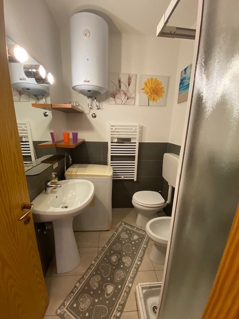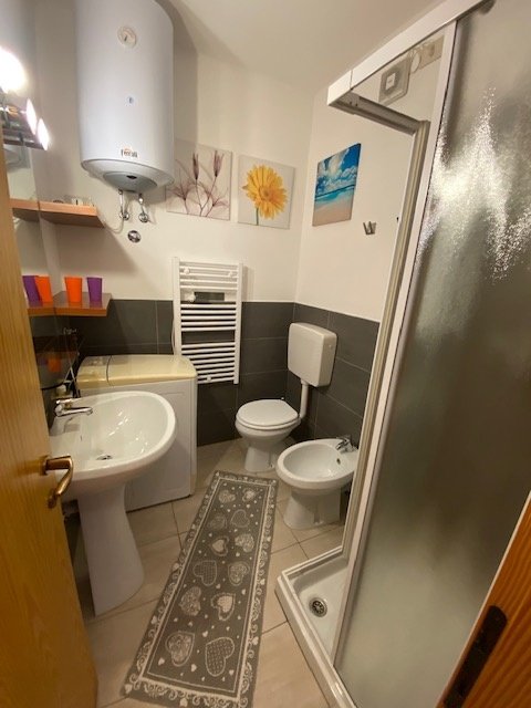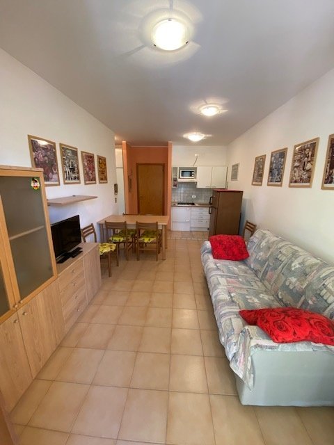 Wohnung im ersten Stock mit Aufzug mit Wohnraum und Esszimmer mit Doppelschlafcouch, Kochnische, Bad mit Duschkabine, Dreibettzimmer, große Terrasse, Parkplatz, DGT-TV, Klimaanlage, Swimmingpool