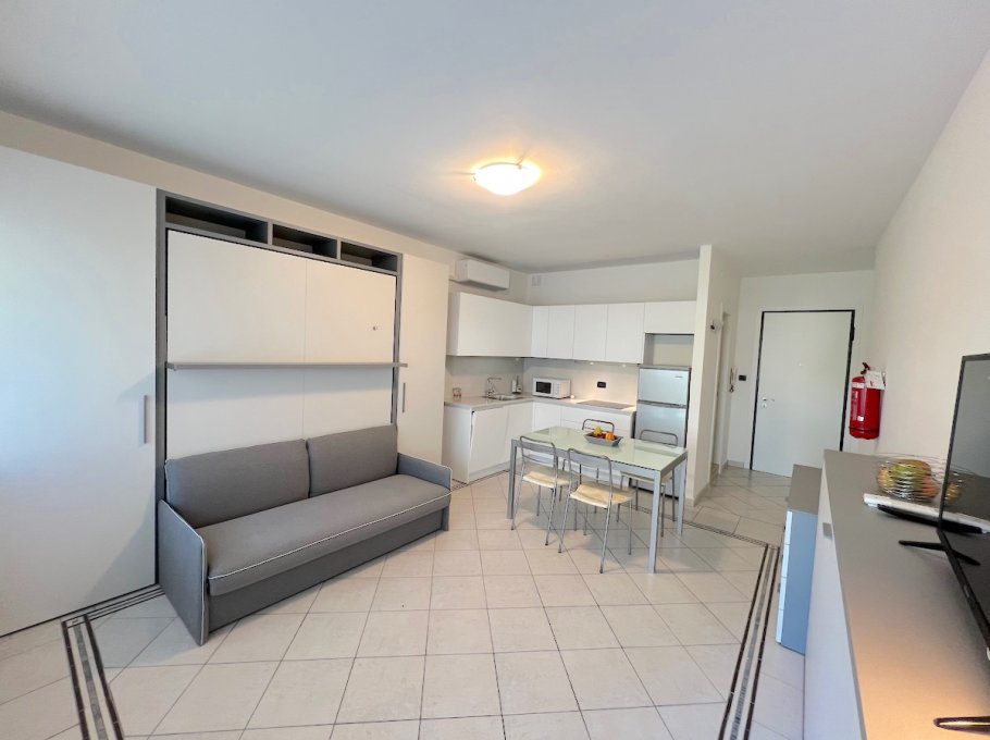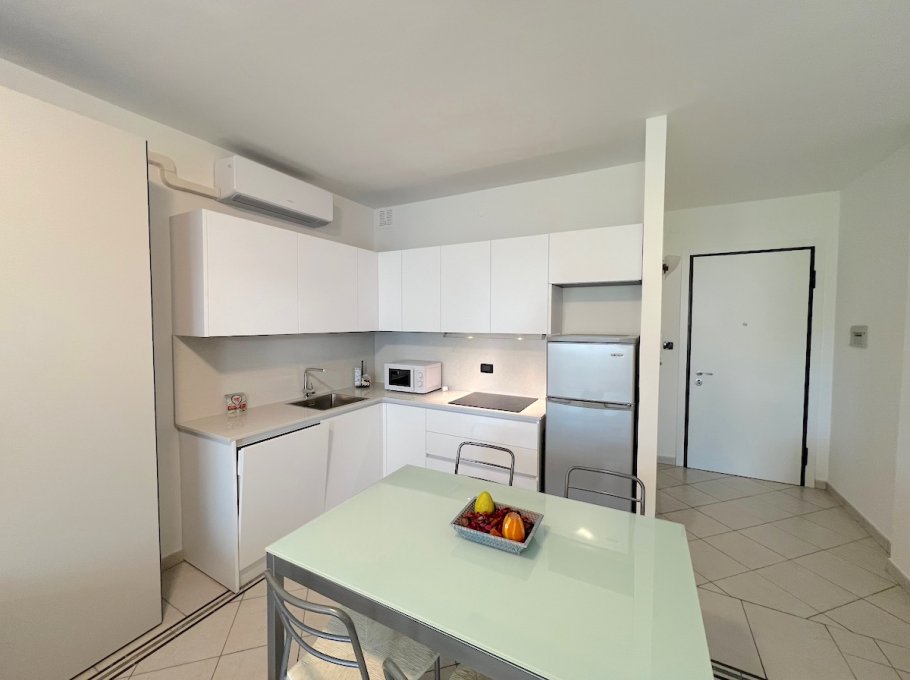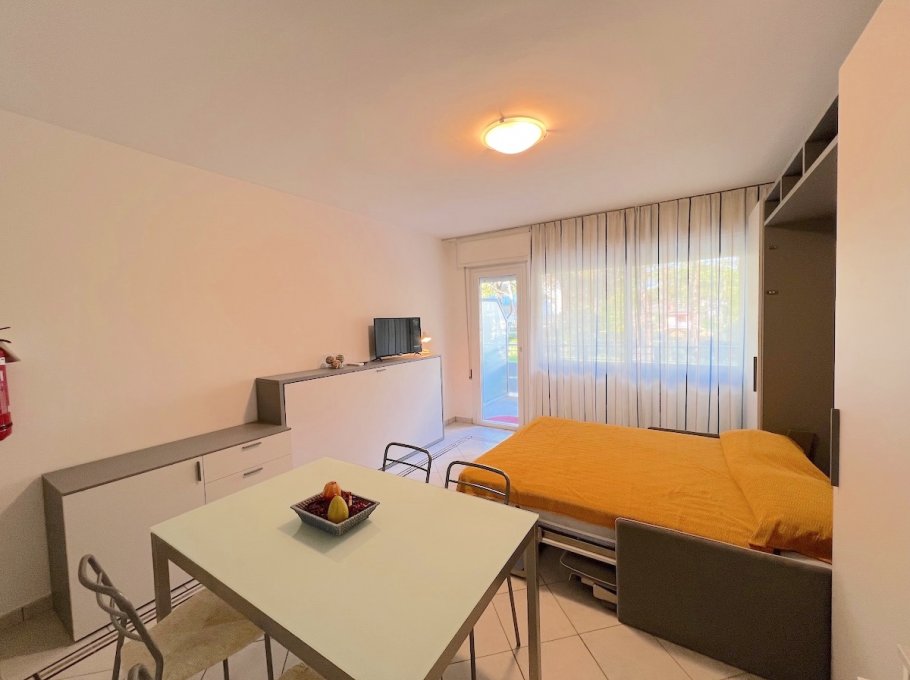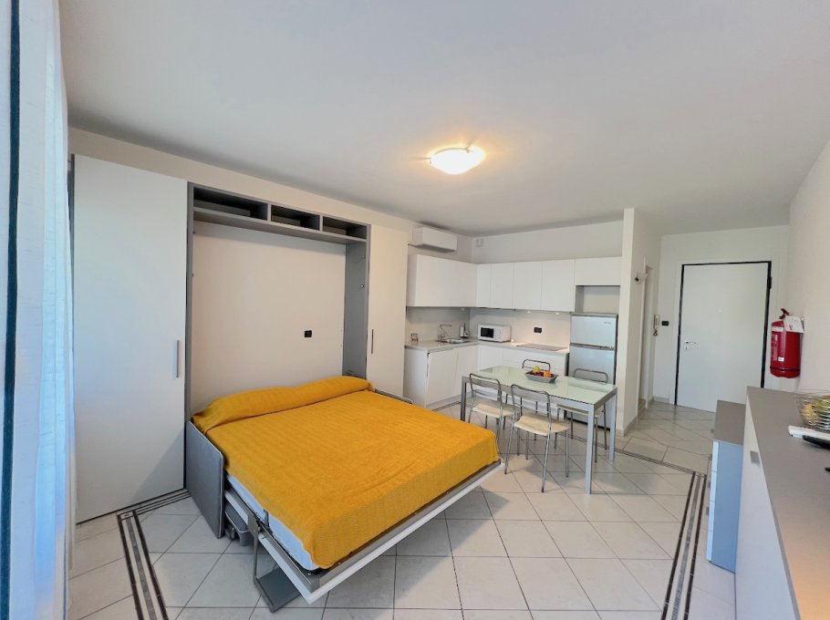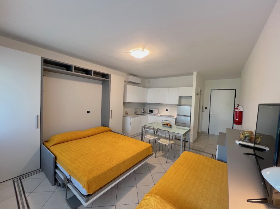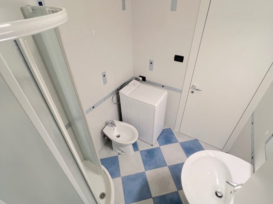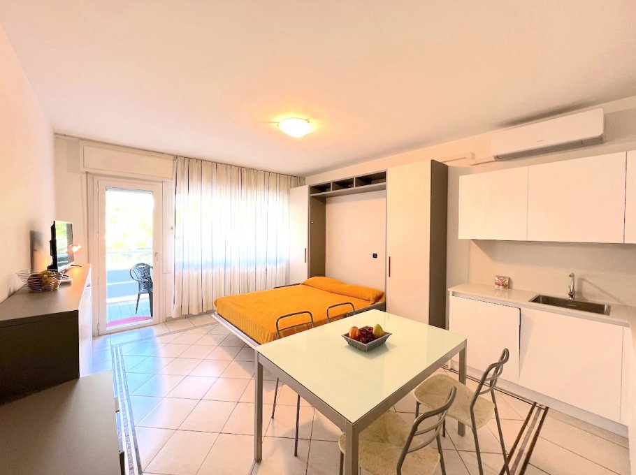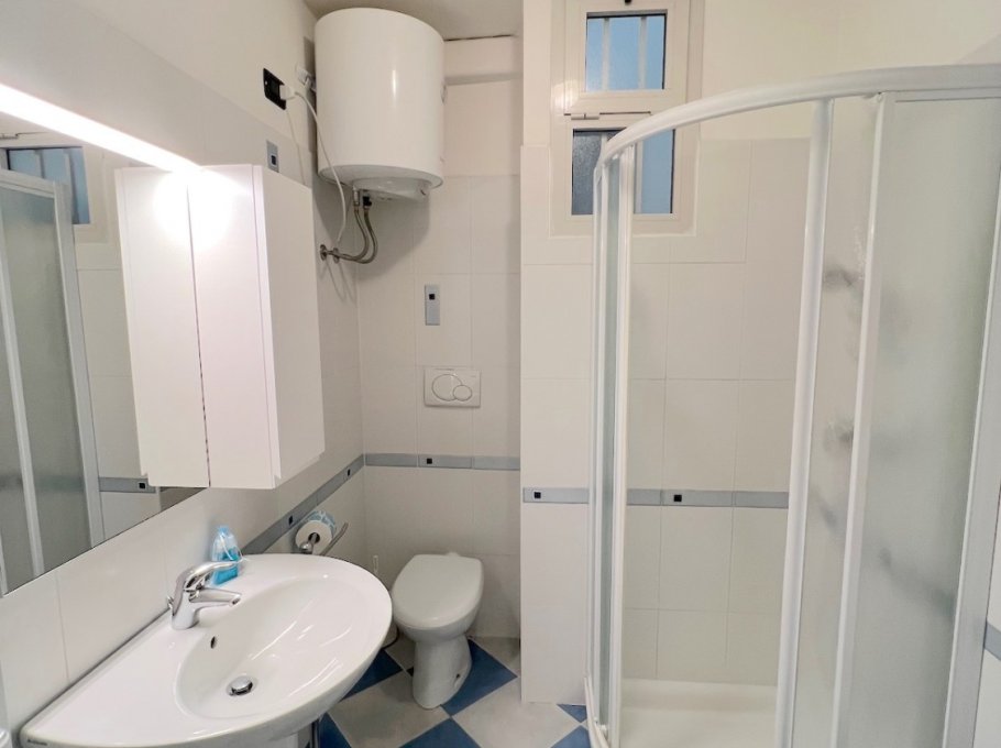 Big one-room apartment nr. 2 in the first floor with kitchenette, 1 double bed, 1 single sofa bed, windowed bathroom with shower box, balcony and 1 house parking-place. Comforts: tv, air conditioning, wash machine, dish wacher. Incl. in the price: 1 beach umbrella and two sun beds at the beach on request.WI-FI