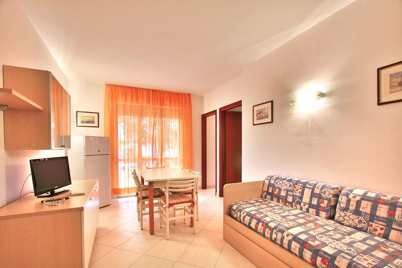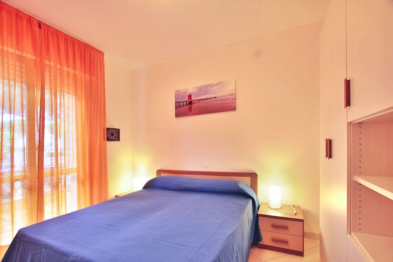 Renewed and new furnished apartment nr. 4 on the mezzanine floor with living room with sofa bed, kitchenette, balcony, double room, windowed bathroom with shower box. Comforts: TV, 1 covered parking place, air conditioning, washing machine, dish washer, microwave, safe, WI-FI. 1 beach umbrella, 2 sun beds at the beach included