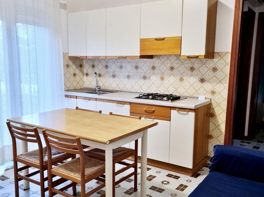 First floor apartment consisting of a double bedroom with a double bed and a single bed, living room with sofa and kitchenette, bathroom with shower, balcony, air conditioning and reserved outdoor parking.