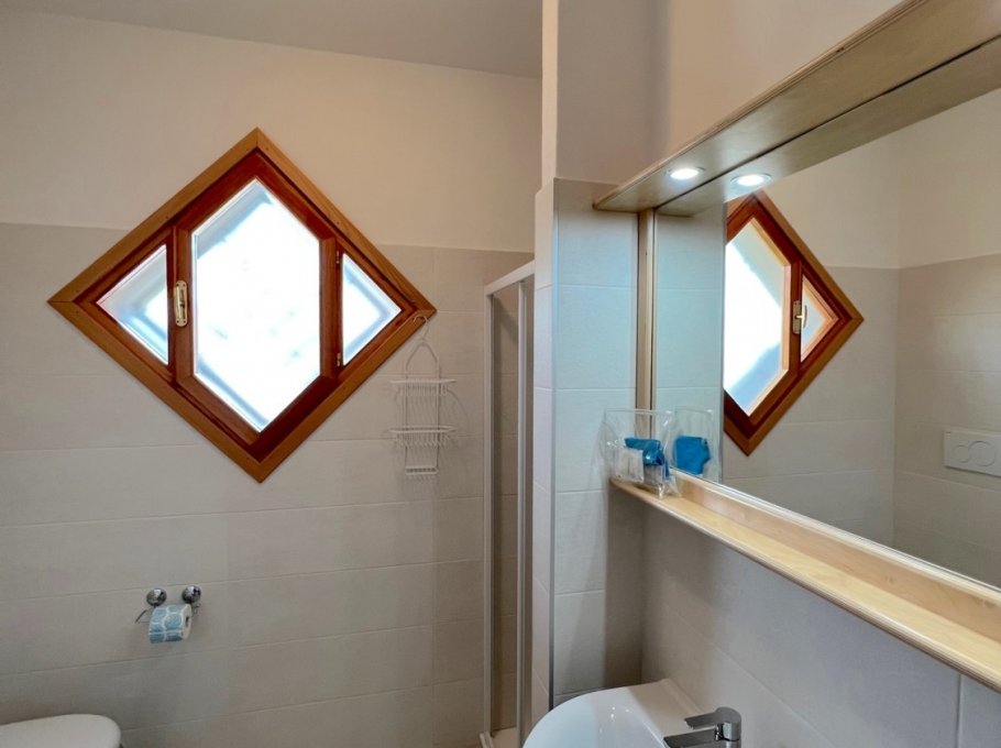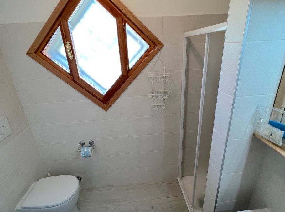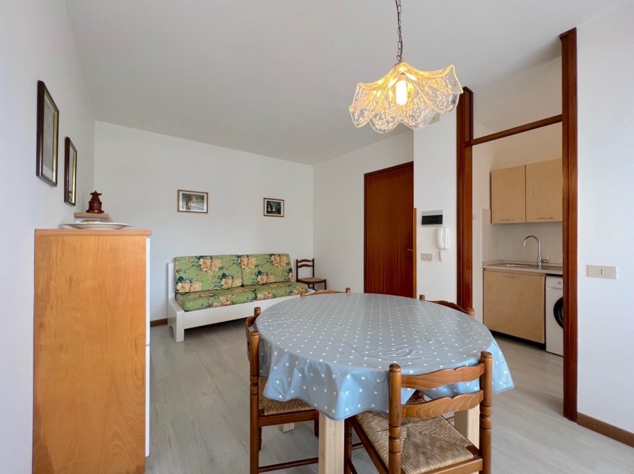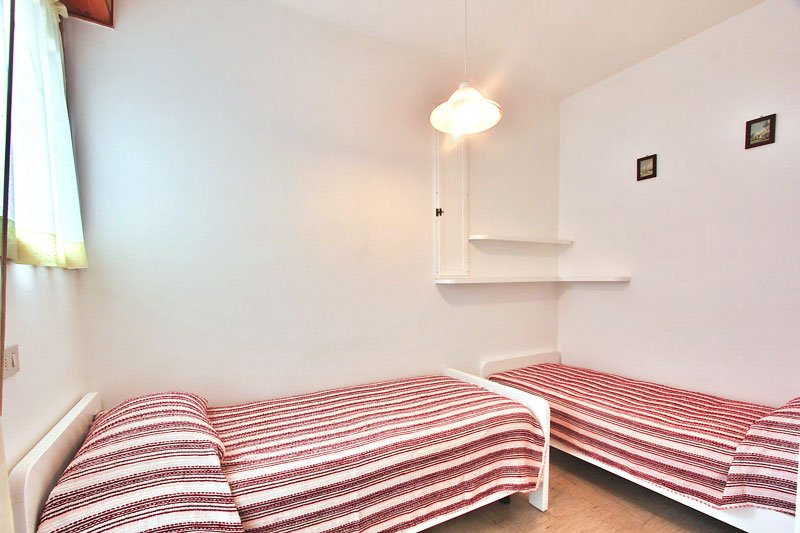 apartment in a small building placed in the mezzanine floor, living room with sofa bed, equipped kitchenette, 1 double bedroom, 1 bedroom with two single beds, bathroom with shower, large terrace