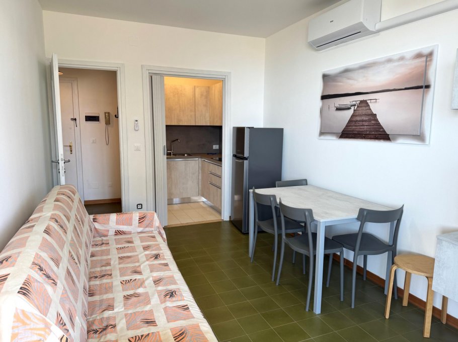Apartment on the 3rd floor on the seafront; it is the first on the east side and has a sea view from the balcony. It consists of a double bedroom, living room with double sofa bed, kitchenette, bathroom with box shower. Compared to the photos you see, the double bed, the sofa bed and the kitchen will be changed. The apartment also has air conditioning (only one split in the living room, the use of which is on request, at a cost of € 35.00 per week) and a washing machine; the parking space is inside the condominium, not numbered.