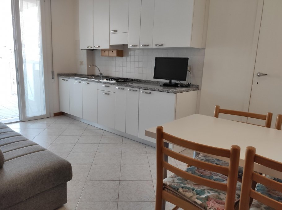 Apartment on the 5th floor with living - room with single sofa bed, kitchenette, balcony, bathroom with window and shower and one double bedroom. Wash-machine. Televisione. Air Conditioning.