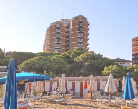 Just a short distance far from the beach and the town centre, this apartment block is situated near to supermarkets, bars, pizzerias, etc ... This building has a central tv-aerial and a lift. Parking space at the "Junior parking lot" within walking distance from the residence.
