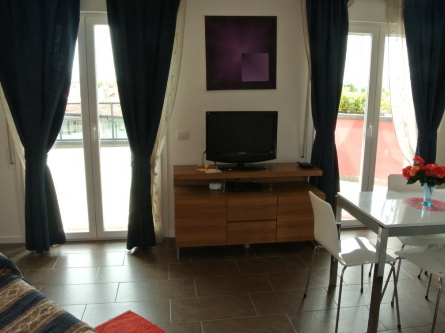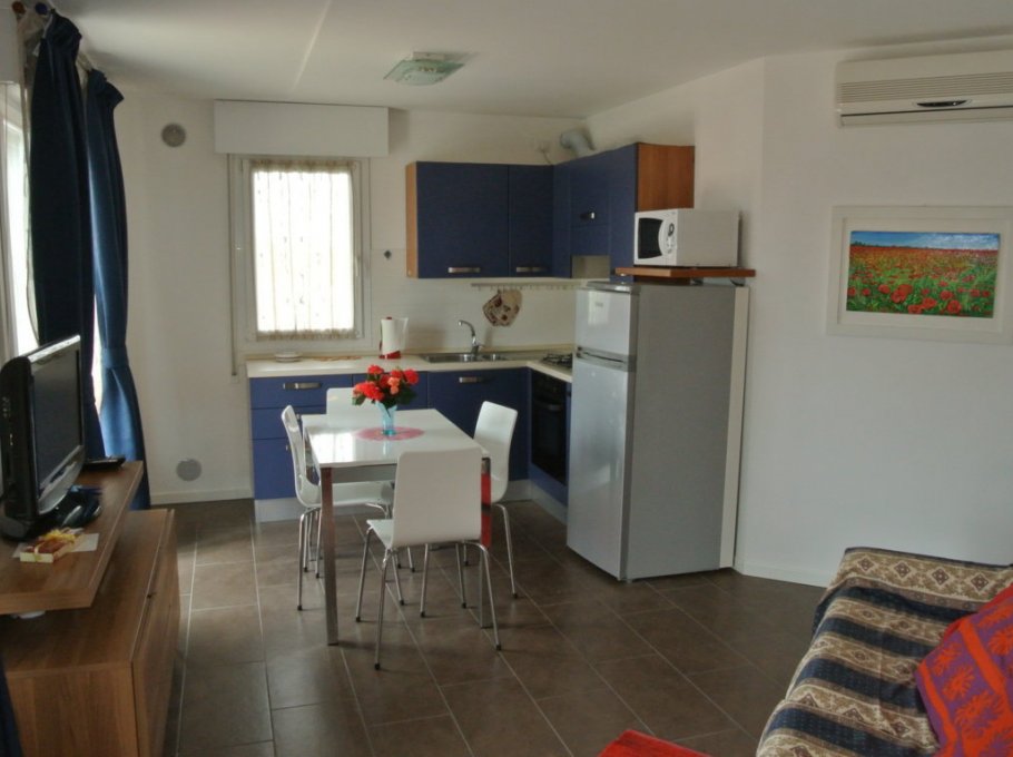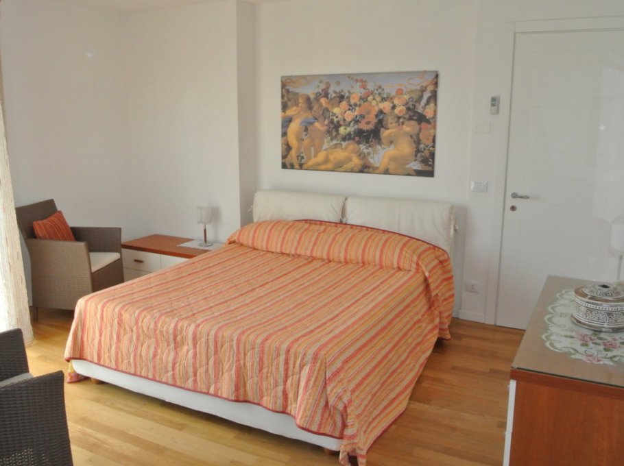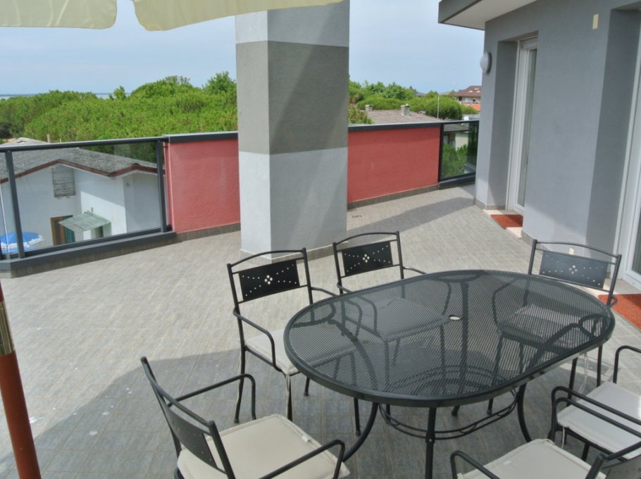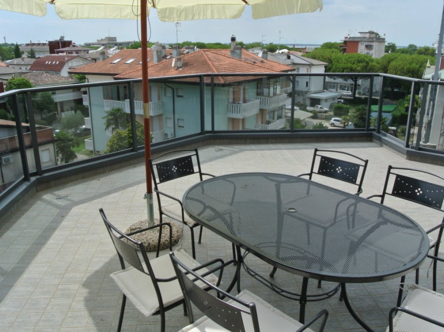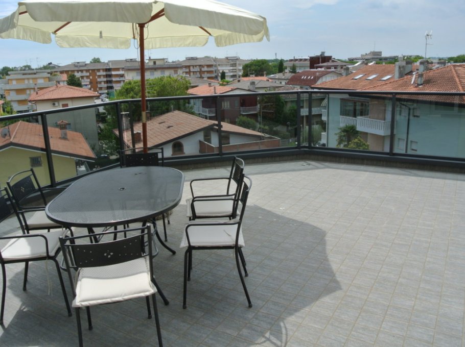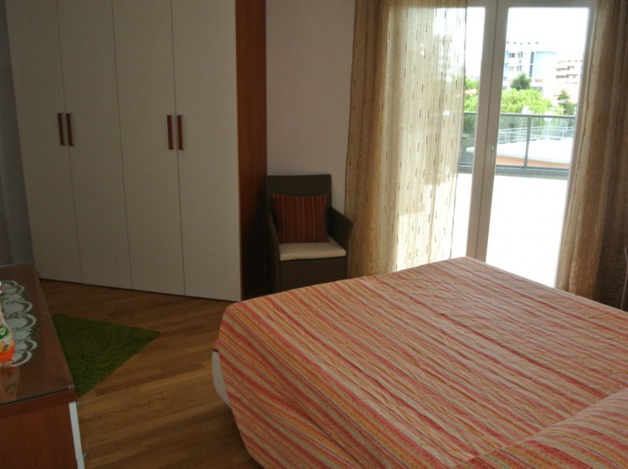 Appartement top au quatrième et dernier étage se compose d’un grand salon avec canapé-lit et coin cuisine séparée, grande terrasse avec table et chaises, solarium avec douche en plen air, salle de bain avec douche et une fenêtre, chambre à deux lits, une chambre double avec salle de bains et balcon. Door, machine à laver et lave-vaisselle, four micro-ondes, TV satellite, coffre-fort, air conditionné.
