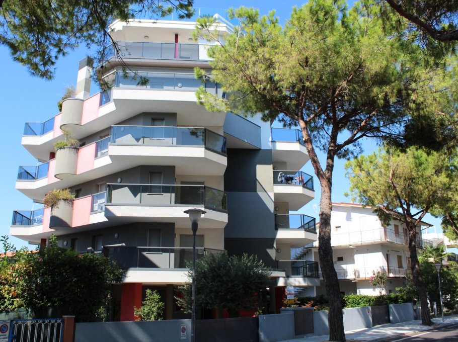 Nouvelle construction à Lignano Sabbiadoro en semi-central, près de Piazza Abbaye et le centre commercial avec parking numéroté.