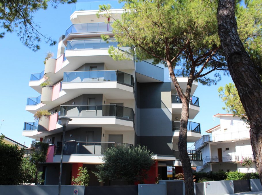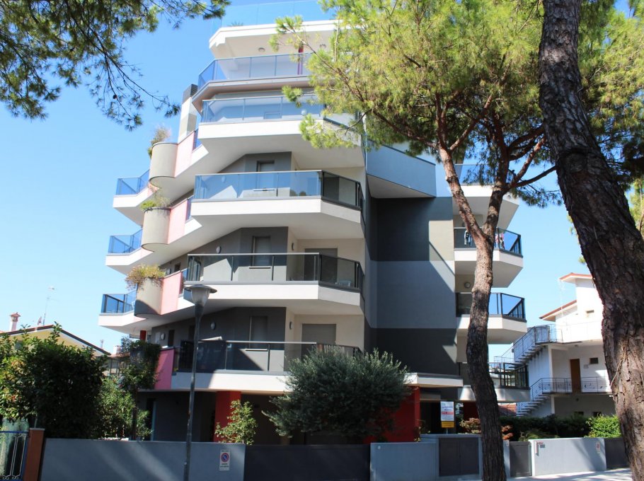 Nouvelle construction à Lignano Sabbiadoro en semi-central, près de Piazza Abbaye et le centre commercial avec parking numéroté.