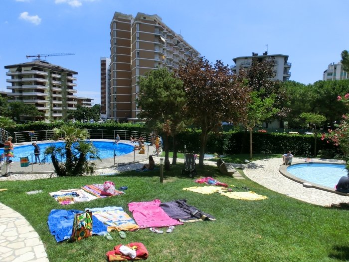 The condominium is located in a quiet area, a short walk from the beach and essential shops such as supermarkets, newsagents, tobacconists, bars, ice cream parlours, pizzerias and restaurants. It is also about 500 metres from “Viale Centrale”, which leads to the beautiful pedestrian boulevard in the centre of Lignano Sabbiadoro in just a few minutes.