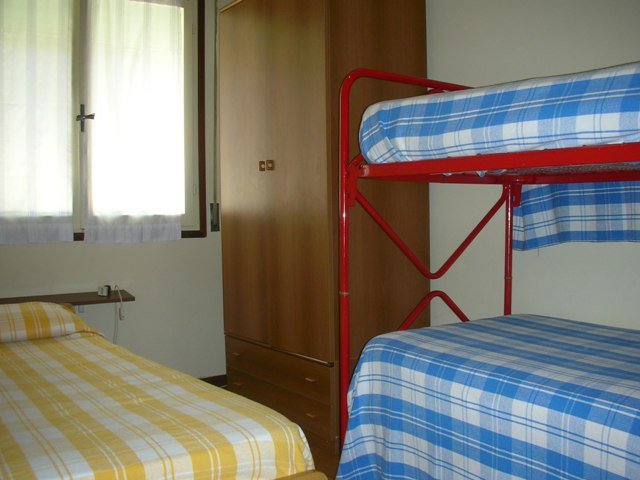 appartamento al piano terra, composto da soggiorno-cottura, una camera da letto matrimoniale, una camera da letto con un letto singolo e un letto a castello, bagno con doccia