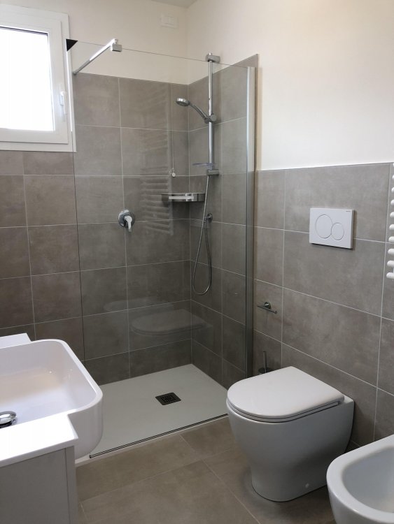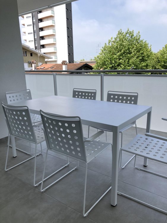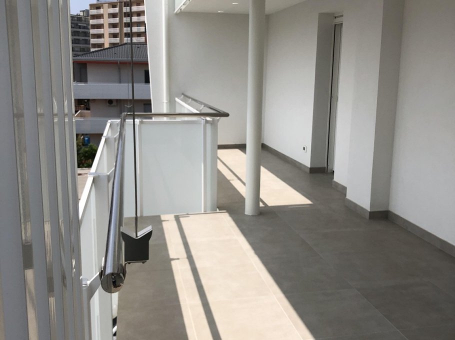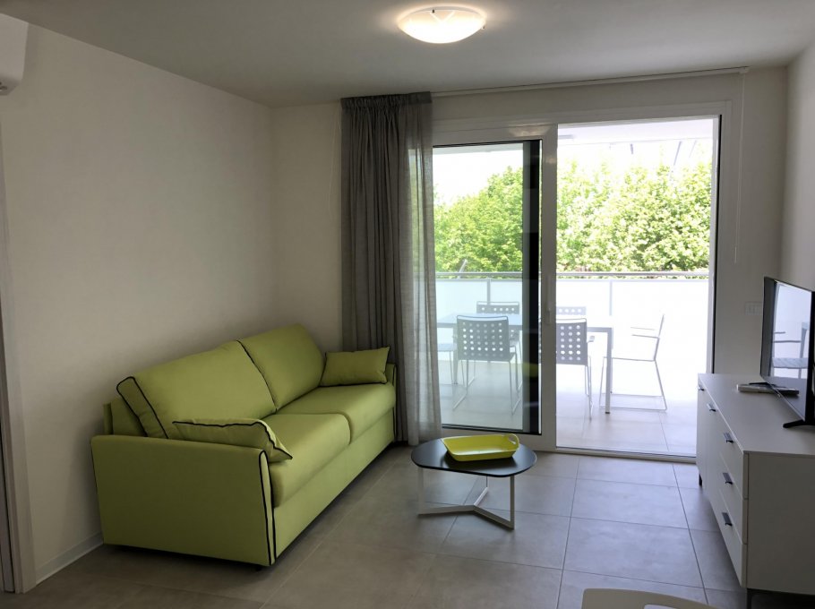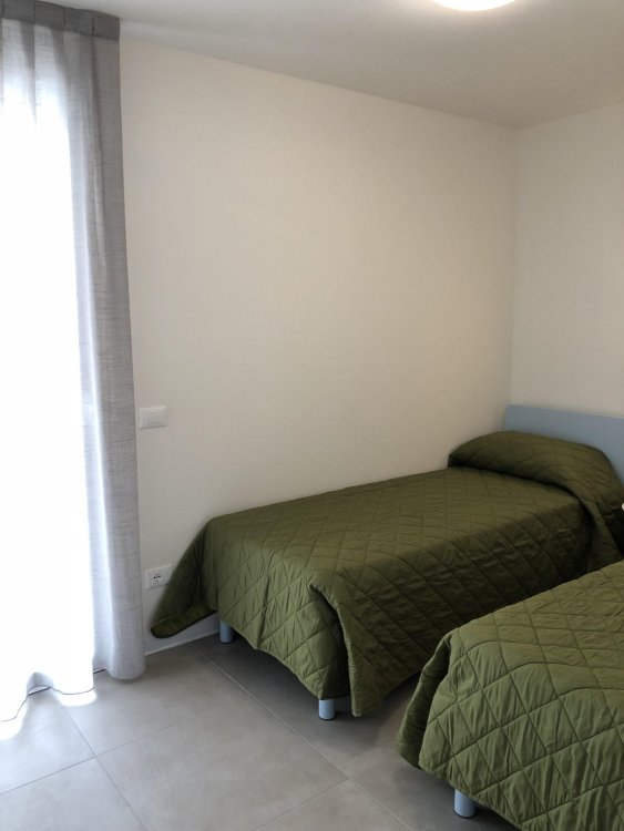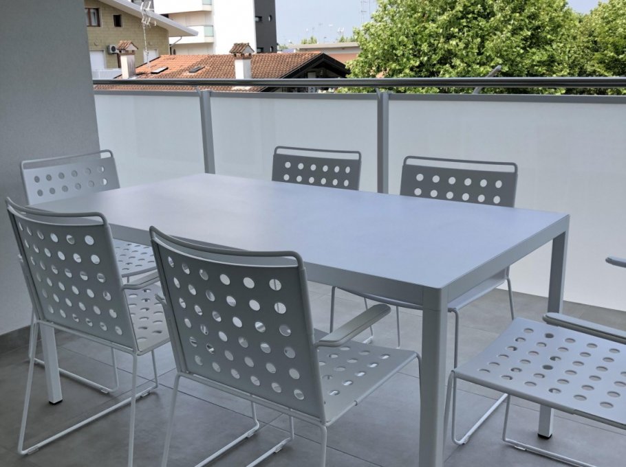 New three-room apartment with modern furnishings on the 4th floor with lift, consisting of 1 double bedroom, 1 bedroom with 2 beds, living room with sofa bed for 2 people, kitchen with dishwasher, microwave, fridge with freezer, induction hob, bathroom with shower / WC / bidet, 2 large and habitable balconies, washing machine, TV, safe, air conditioning, WiFi, numbered parking space.