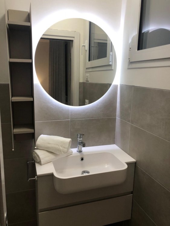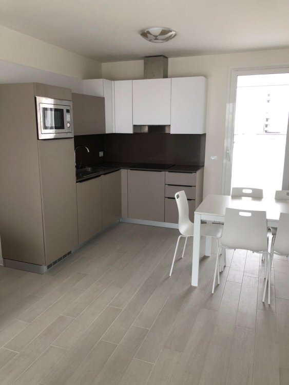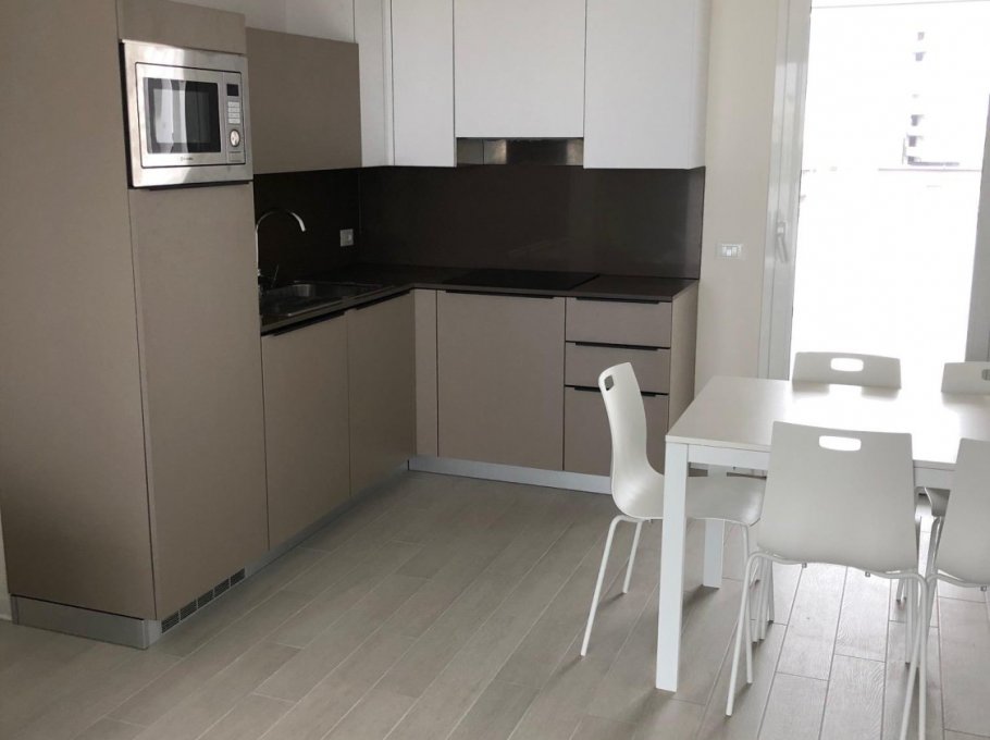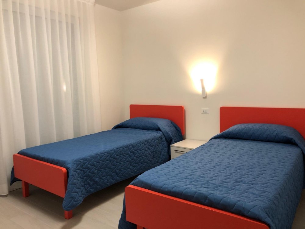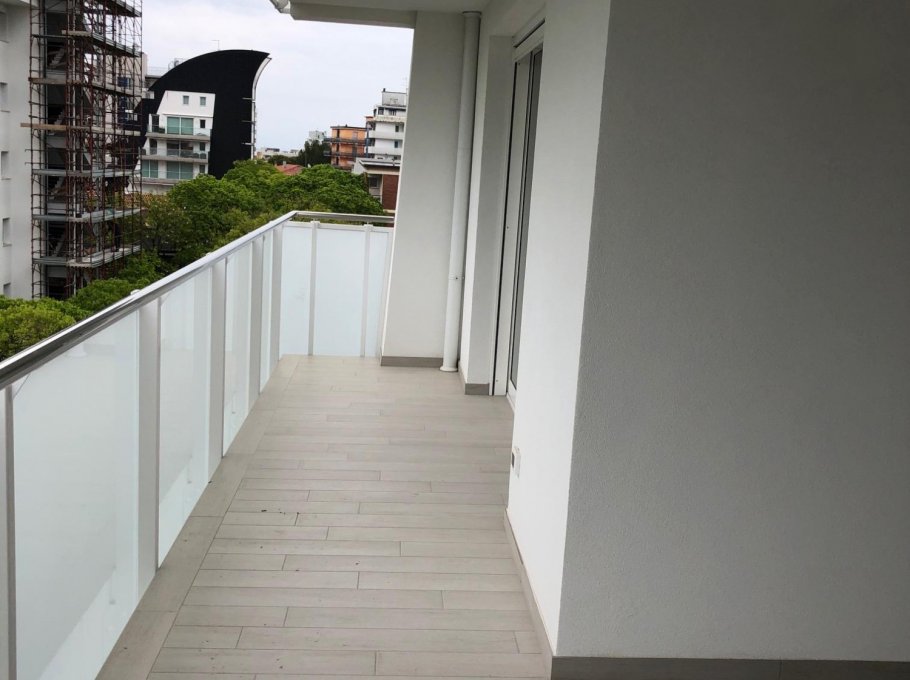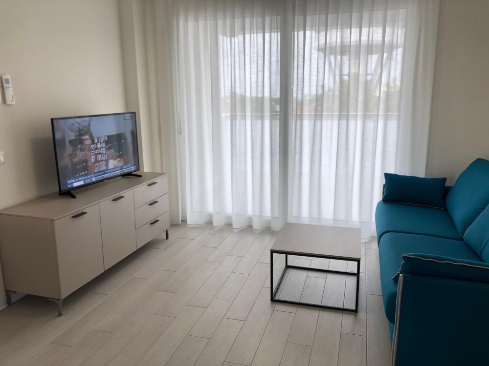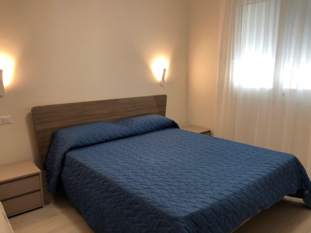 New three-room apartment with modern furnishings on the 5th floor with lift, consisting of 1 double bedroom, 1 bedroom with 2 beds, living room with sofa bed for 2 people, kitchen with dishwasher, microwave, fridge with freezer, induction hob, 2 bathrooms with shower / WC / bidet, 2 large and habitable balconies, washing machine, TV, safe, air conditioning, WiFi, numbered parking space.
