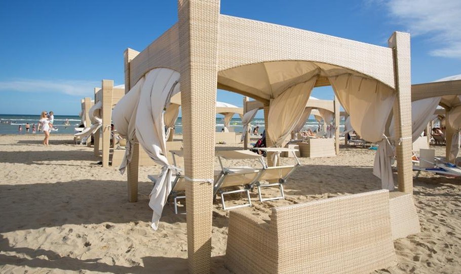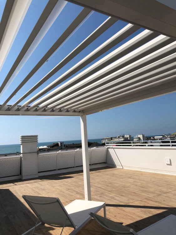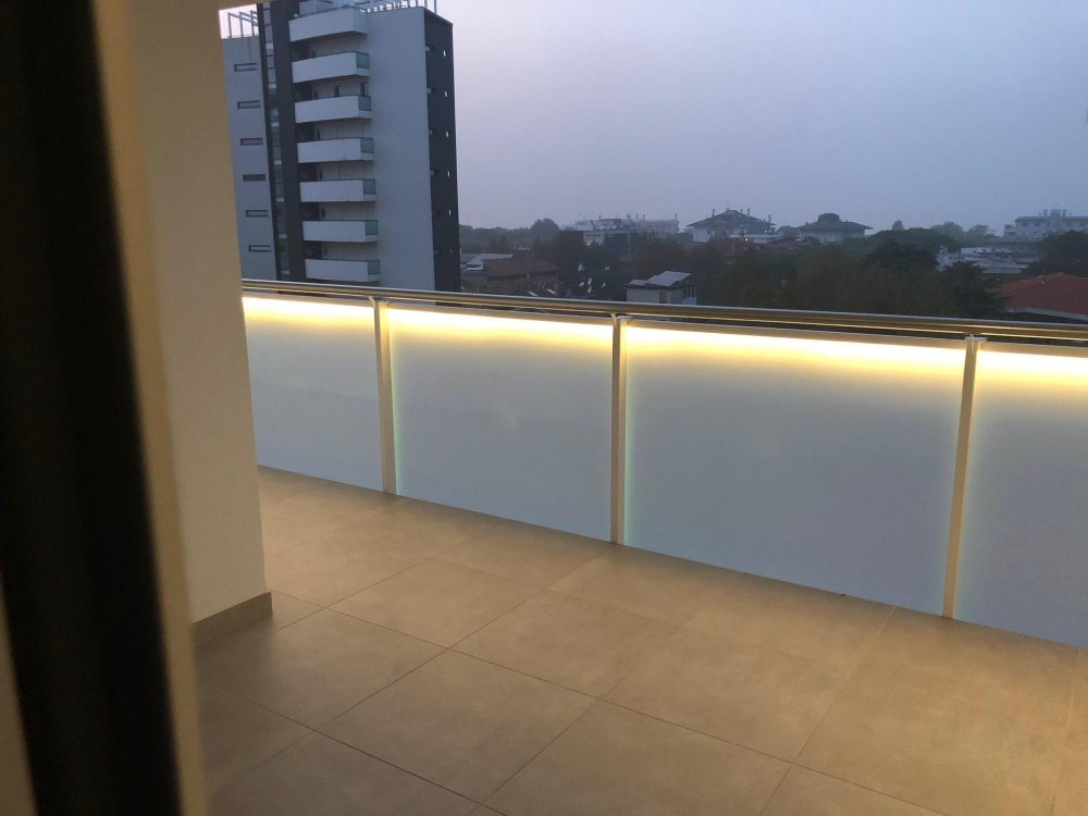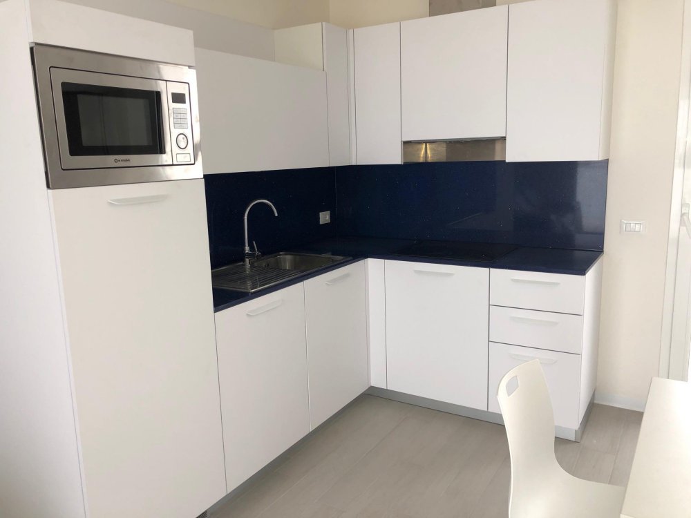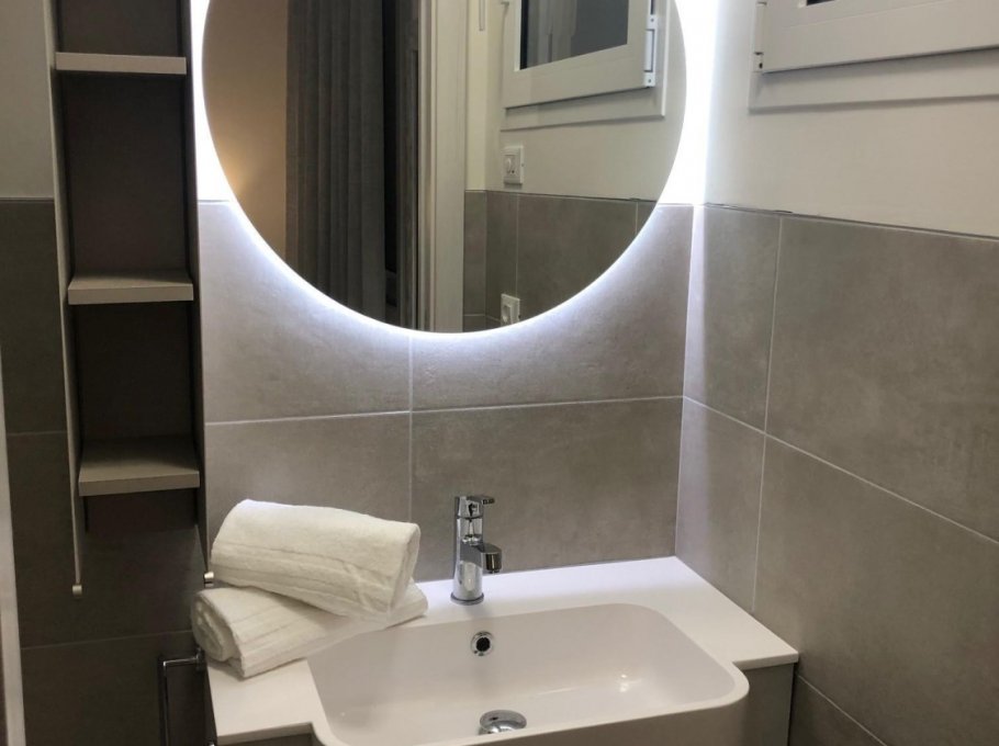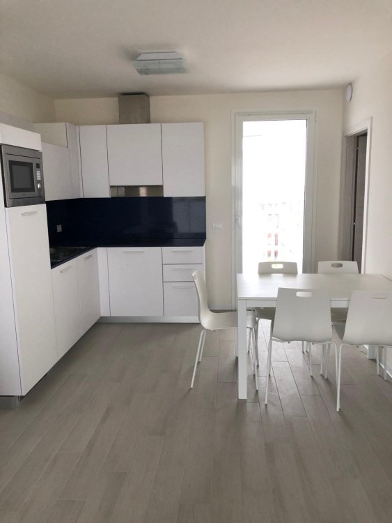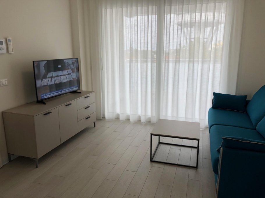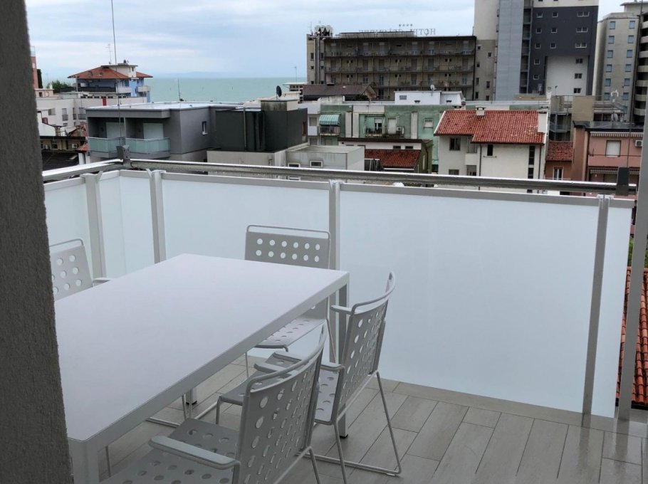New three-room apartment with modern furnishings on the 6th floor with lift, consisting of 2 double bedrooms, living room with sofa bed for 2 people, kitchen with dishwasher, microwave, fridge with freezer, induction hob, 2 bathrooms with shower / WC / bidet, 2 large and habitable balconies, washing machine, TV, safe, air conditioning, WiFi, numbered parking space, solarium terrace for exclusive use on the top floor of the building.