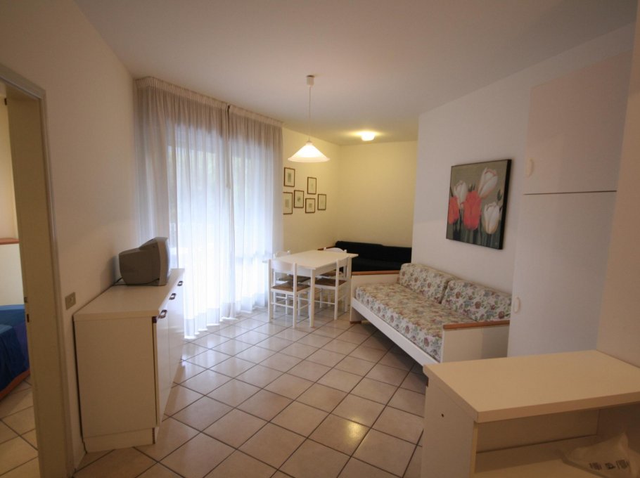 Apartment in Residence with pool, in Lignano Sabbiadoro, with 1 Double - bedroom, livingroom with sofa bed, kitchenett, airconditionig, bathroom with shower, terrace, parking place.