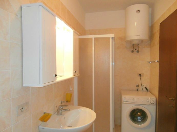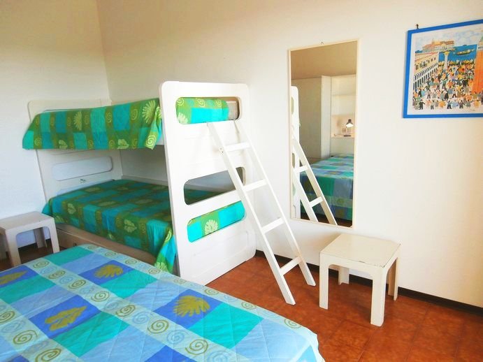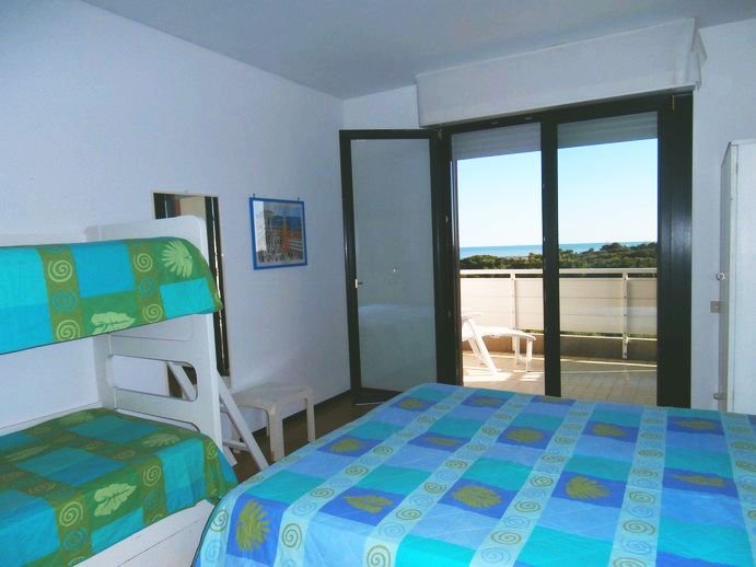Apt. 114 - Apartment on the 4rd floor, with large living room with double sofà bed, kitchnette, four-bedded-room with double-bed and bunk-bed, restaured bathroom. 2 very large balconies with seaview. Washingmashine, washing-dishes, TV conditioned air to pay 30,00 Euro for each week