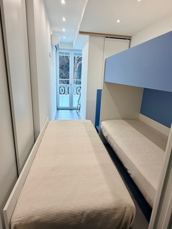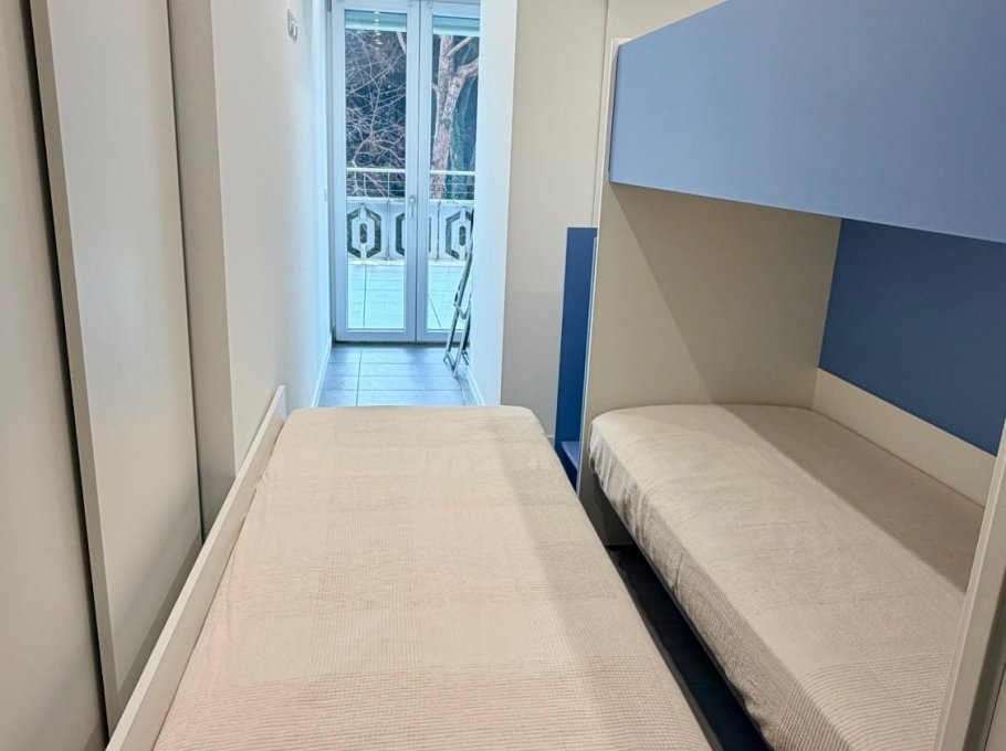 The apartment is located in the Millefiori residence, a 9-floors building with private parking. It is located just 200 meters from the sea. The apartment is located on the 2nd floor and consists of a bedroom with a double bed, a bedroom with 1 bunk bed and 1 single bed, living room with double sofa bed, kitchenette with dishwasher and induction hob, two bathrooms with shower, large equipped terrace overlooking the pine forest. New apartment with air conditioning, TV, wifi, microwave and washing machine.