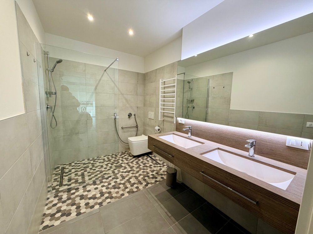 The apartment is located in the Millefiori residence, a 9-floors building with private parking. It is located just 200 meters from the sea. The apartment is located on the 2nd floor and consists of a bedroom with a double bed, a bedroom with 1 bunk bed, living room with sofa bed, kitchenette with dishwasher and induction hob, two bathrooms with shower, large equipped terrace overlooking the pine forest. New apartment with air conditioning, TV, microwave and washing machine.