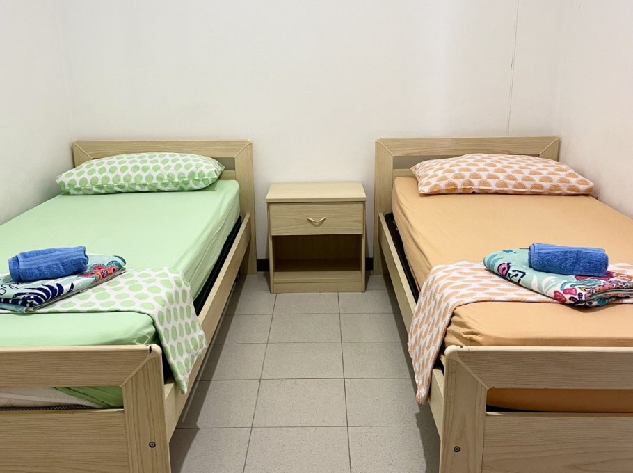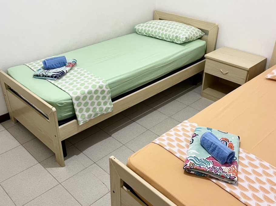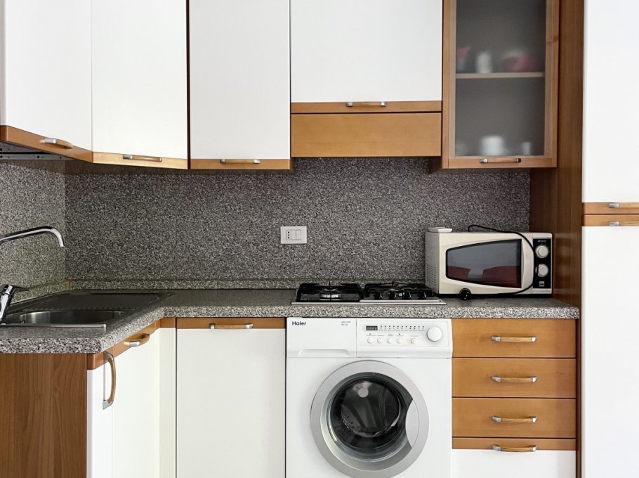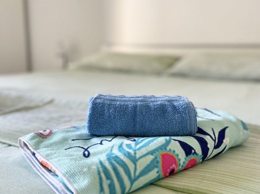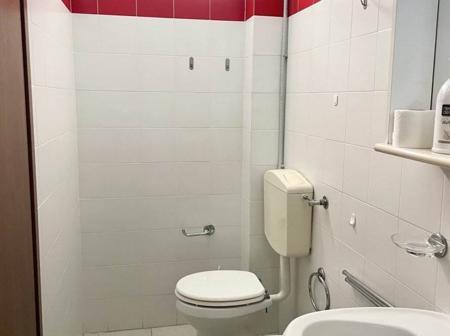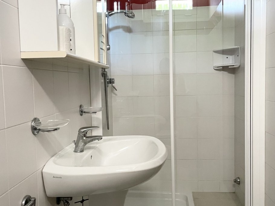 Apartment on 3th floor with one spacious double bedroom, one bedroom with 2 beds, living room with sleeping sofa and cooking area, bathroom with shower box, balcony with view on the pool, air conditioned (on demand € 50,00 for week), television, reserved parking place for 1 car standard.