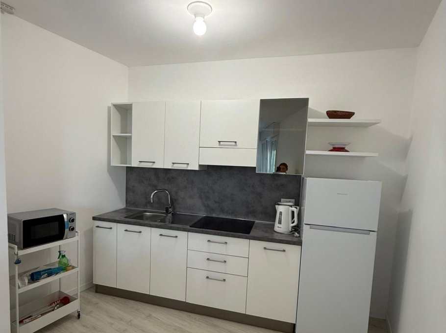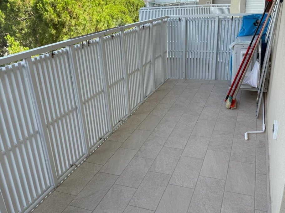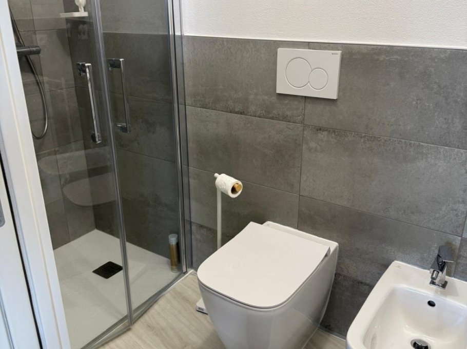 The apartment has been recently completely renovated and is tastefully furnished in a modern and functional style. It consists of a living room with kitchenette, two bedrooms (one double and one with two single beds), a bathroom with window and shower cabin, and a balcony equipped with a sun awning, perfect for dining or relaxing outdoors.