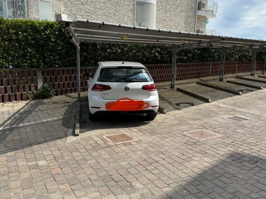 Equipped with: air conditioning, and TV. Private car parked, n.17, covered by net.