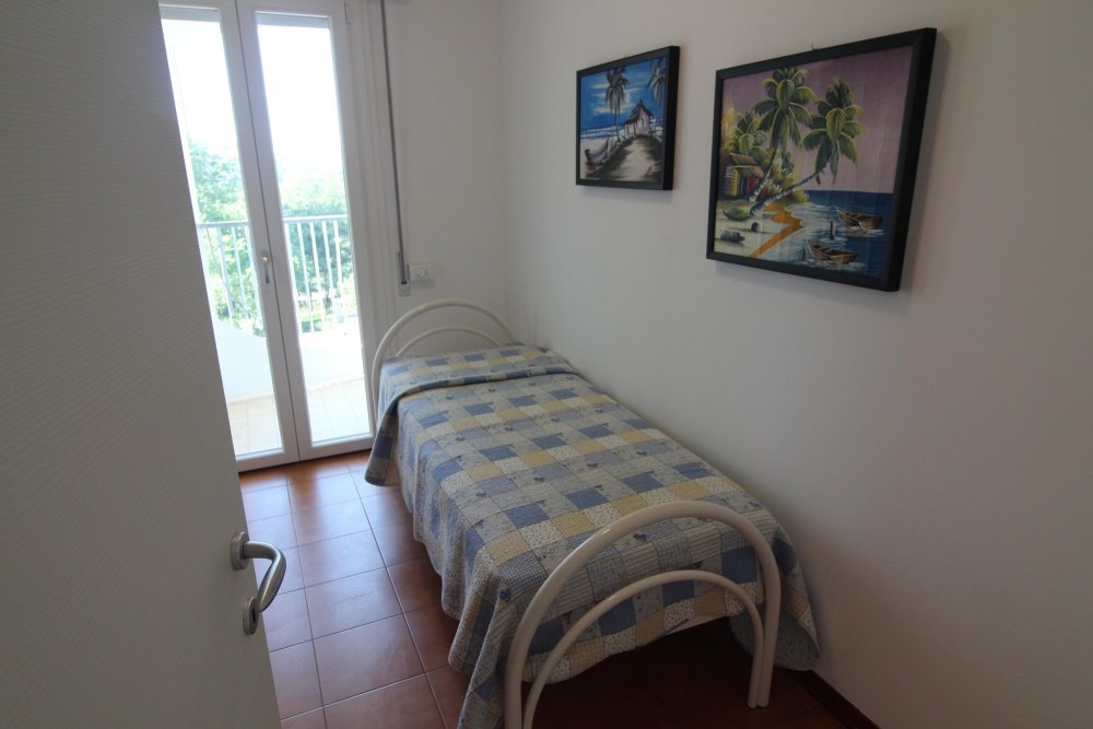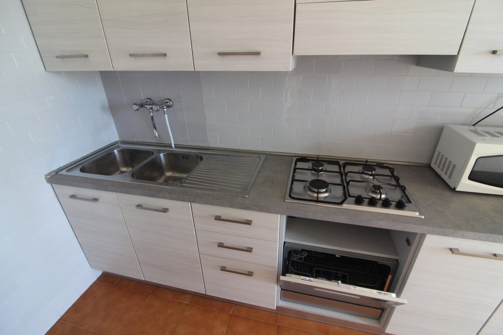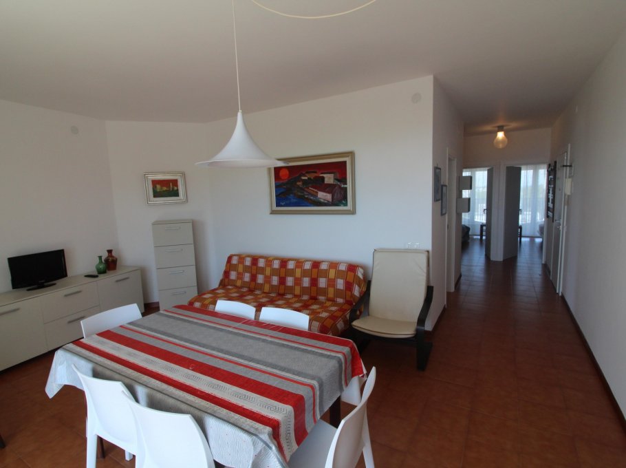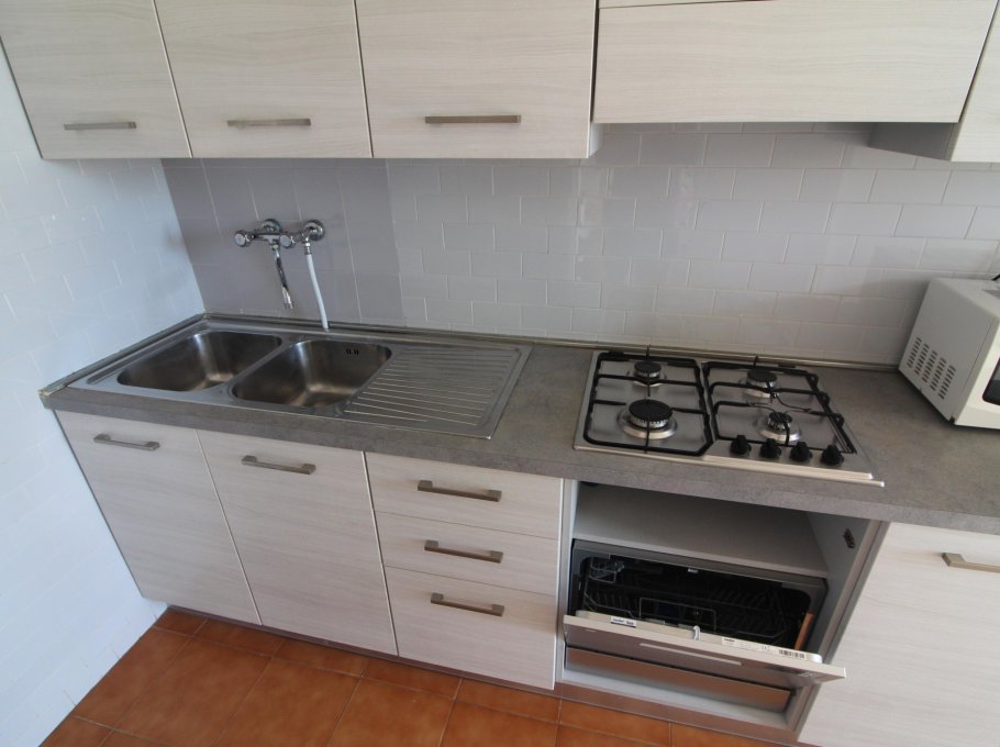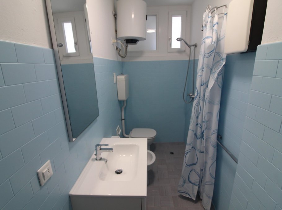 Type D: the apartment lies on the 5th floor and is composed of living-dining room with sofa-bed, kitchen, 1 double bedroom, 1 bedroom with two single beds, 1 single bedroom, 1 bathroom with shower/WC, 1 completely new bathroom, balconies with garden furnishings and seaview. For 6 people. Ideal for families with children - TV - washing machine - dishwasher - air conditioner - microwave oven. Beach service (1 sun umbrella, 1 sun chair and 1 sun bed) provided on request and subject to availability. Energy calass E ( 251,42 kWh/sq m year). CIN: IT030049C2HP55I2UK