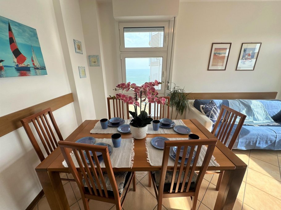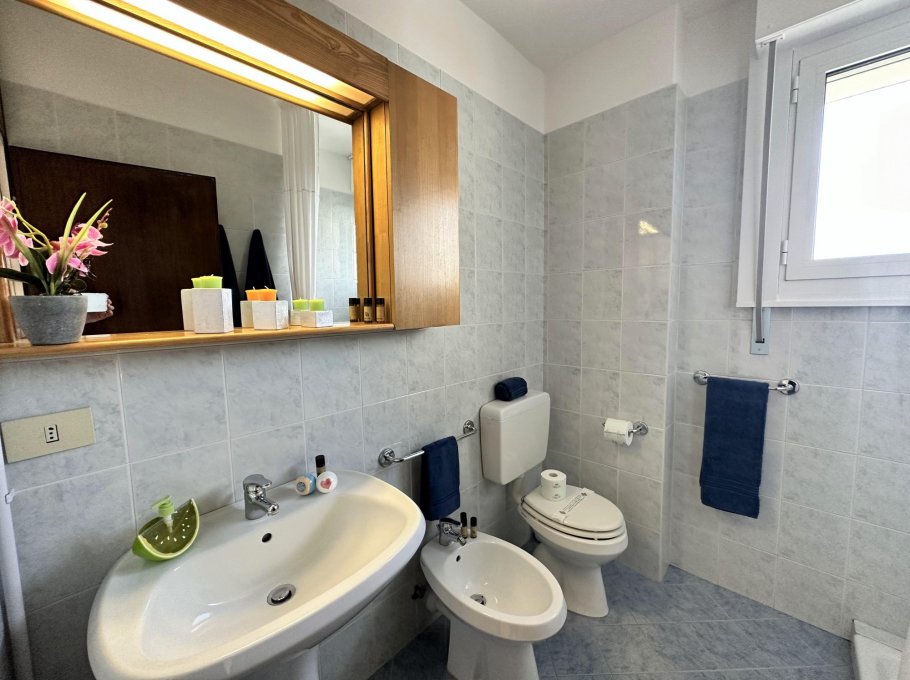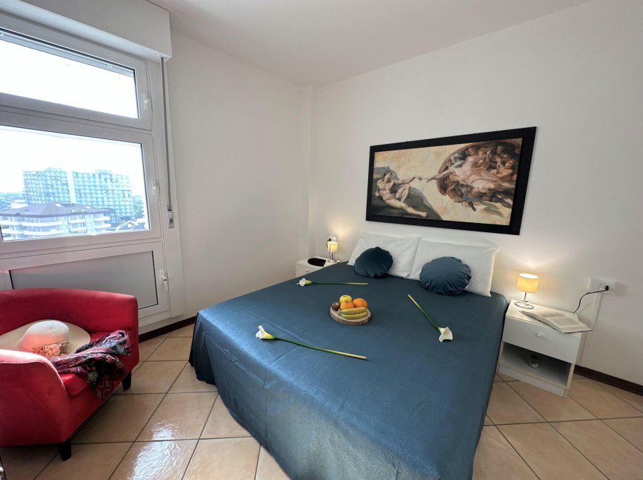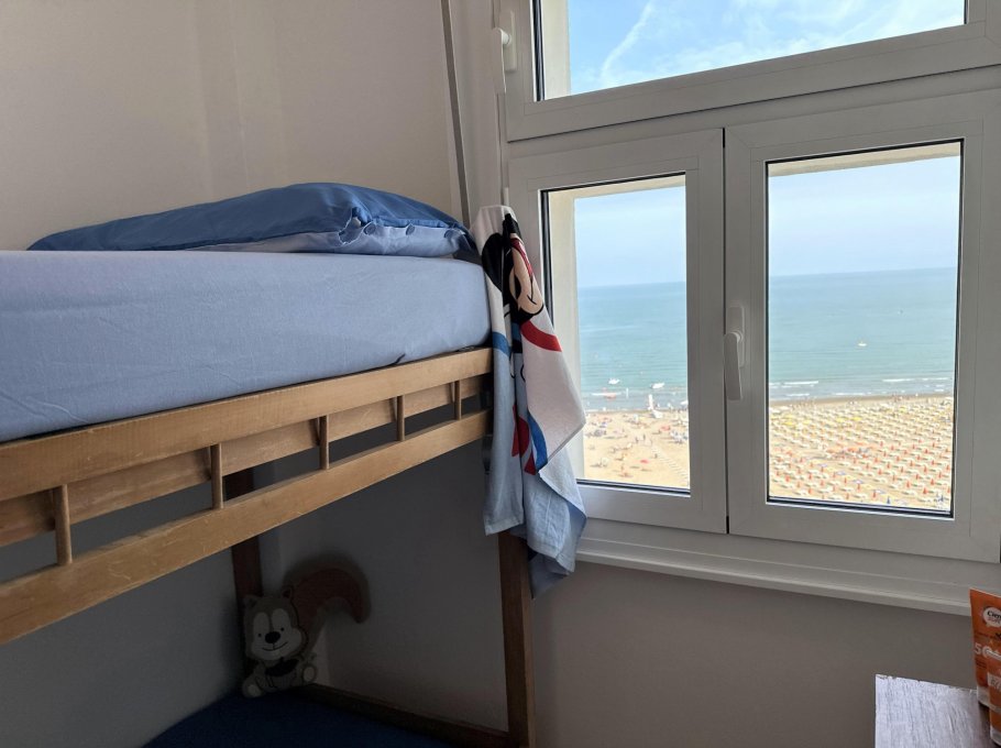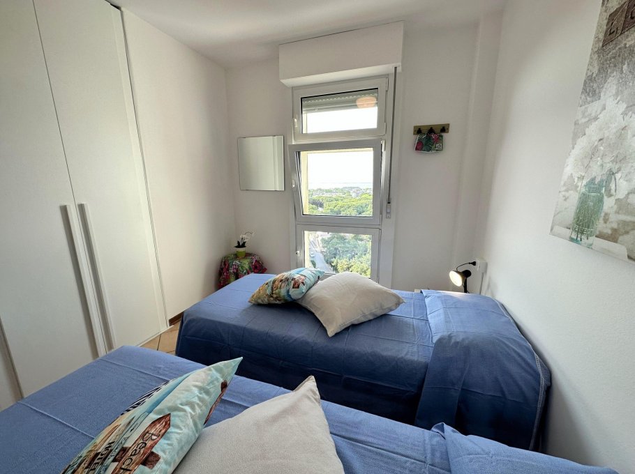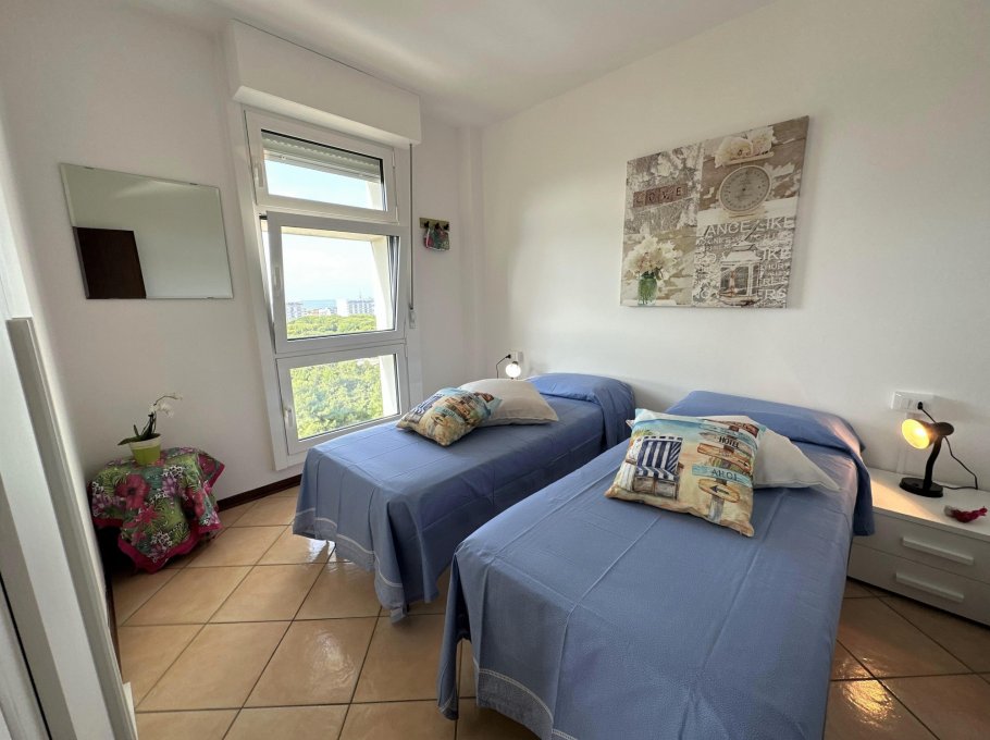 Marvellous apartment at the 11th floor with elevator and private parking, all renewed, composed of living-dining room with Sofa (No Sofa-bed), separate kitchen, nice sea view, bathroom with shower box and window, 1 double sleeping room, 1 sleeping room with double beds and lagoon view, 1 sleeping room with bunk bed, washing machine and microwave. Very cool, with air conditioning. WiFi on request.