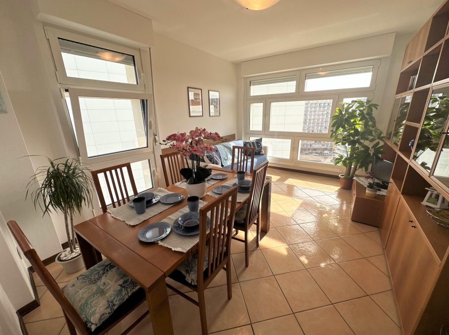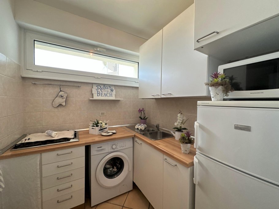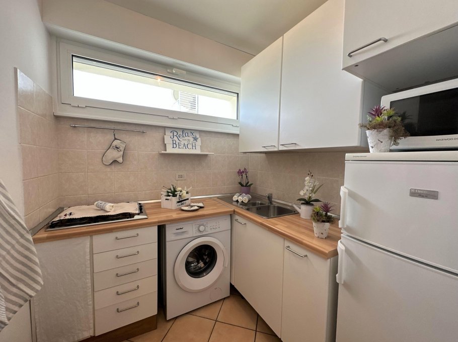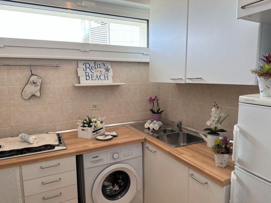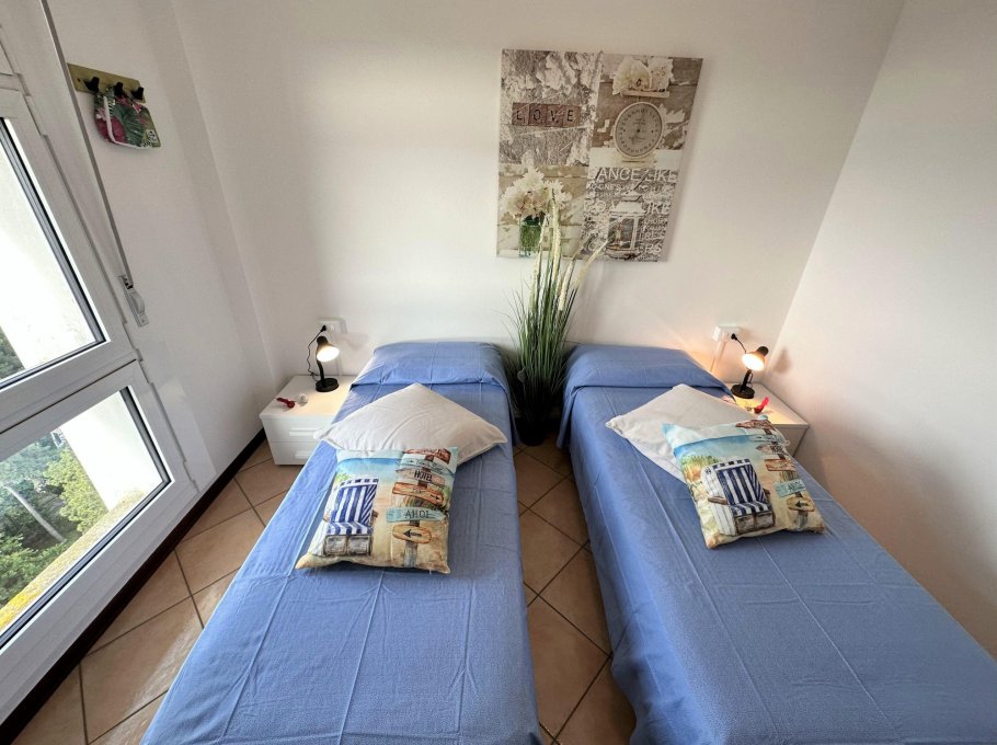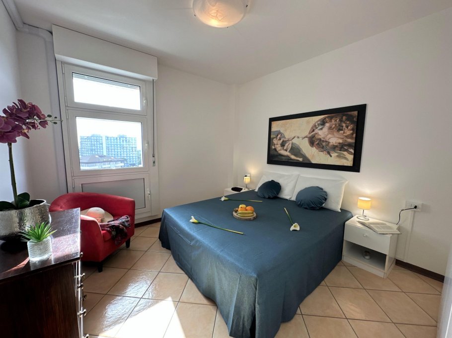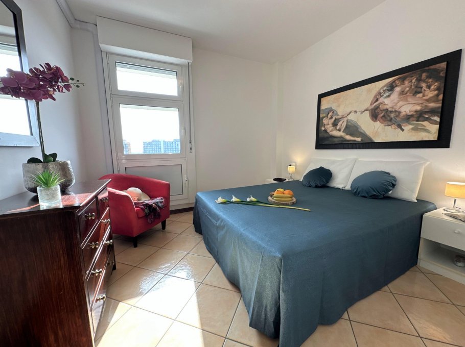 Marvellous apartment at the 11th floor with elevator and private parking, all renewed, composed of living-dining room with Sofa (No Sofa-bed), separate kitchen, nice sea view, bathroom with shower box and window, 1 double sleeping room, 1 sleeping room with double beds and lagoon view, 1 sleeping room with bunk bed, washing machine and microwave. Very cool, with air conditioning. WiFi on request.