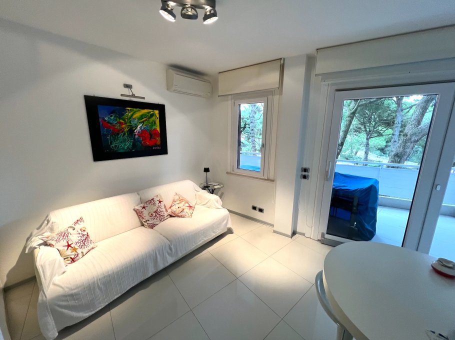 Luxurious studio apartment in Residence located 50 m. from the sea, composed of living room with kitchenette + double sofa bed, bathroom, TV, air conditioning, terrace, swimming pool. WE DO NOT ACCEPT ANIMALS.