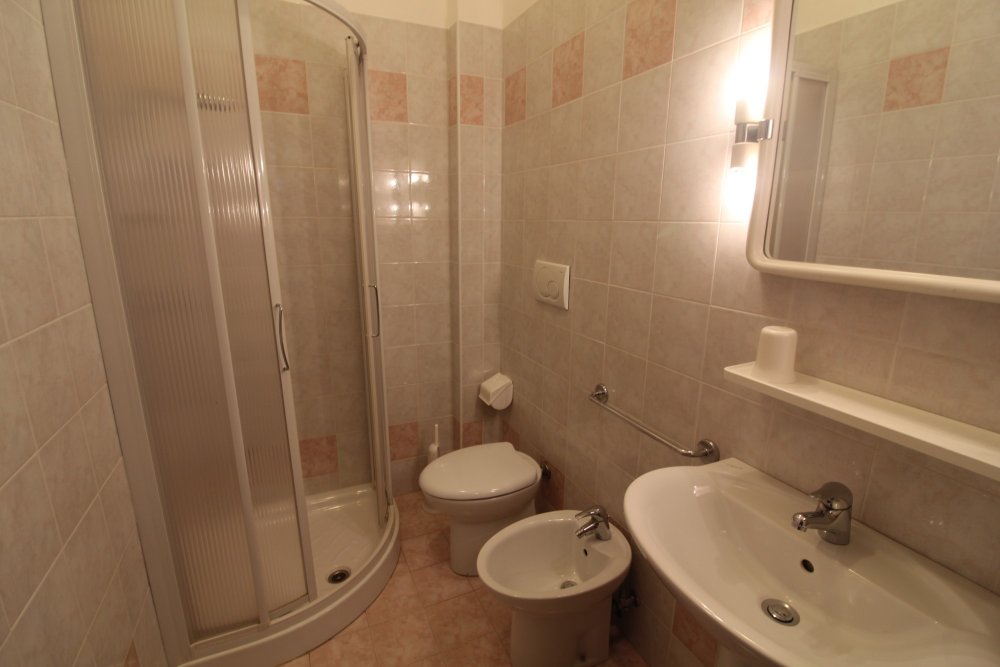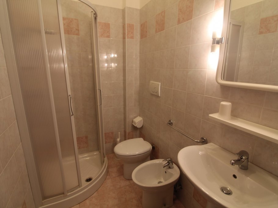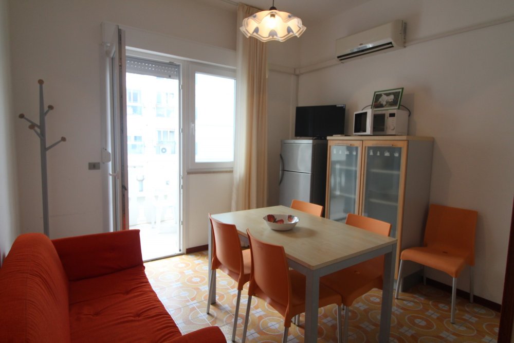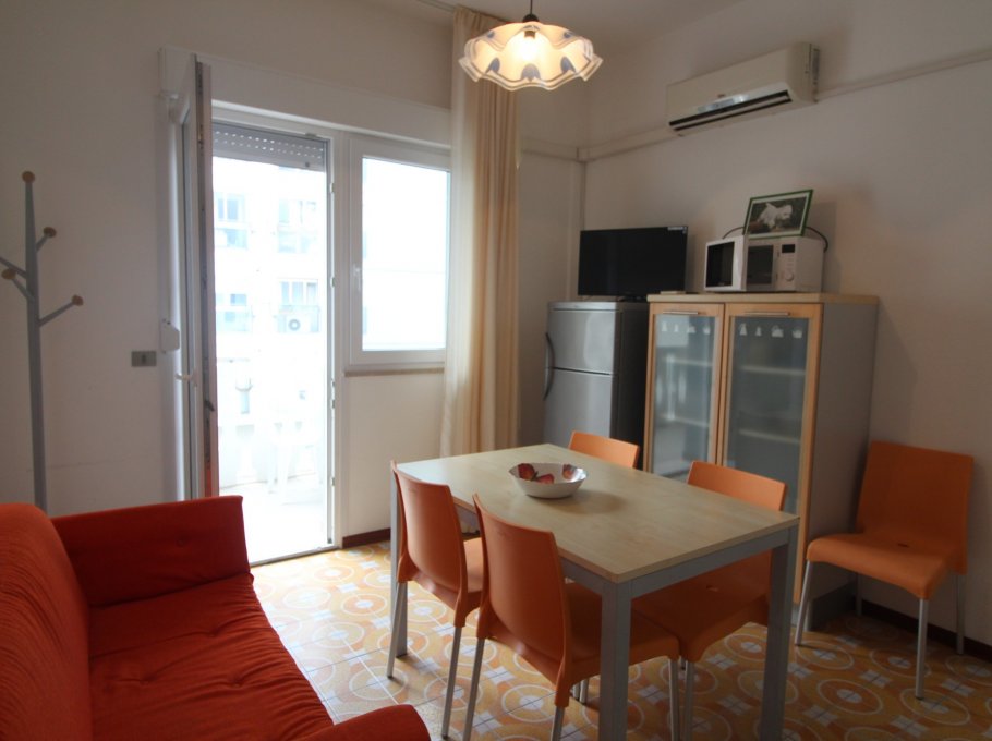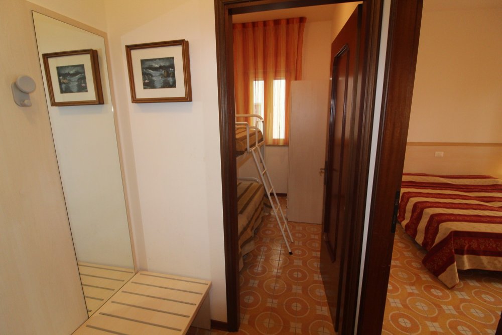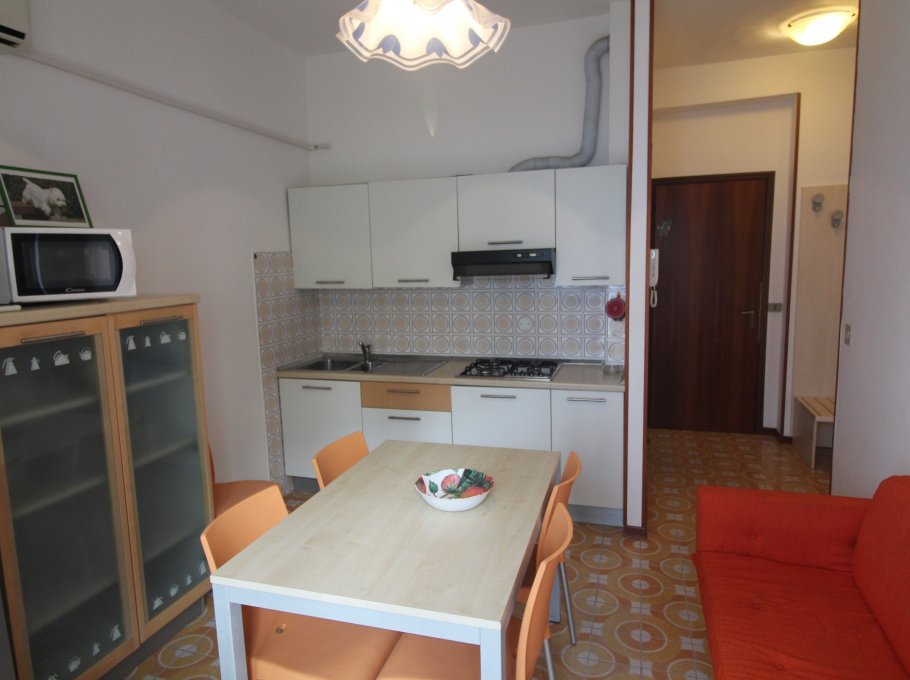 Type C: located in the center of Lignano Sabbiadoro, only a few steps from Piazza Fontana (viale Gorizia) and from the sea. The apartment is located on the third floor and overlooks the back of the condominium; it is composed of a living room with sofa, kitchenette, 1 double bedroom, 1 bedroom with bunk bed, terrace. Equipped with air conditioning and bathroom with shower, washing machine, microwave, shared parking space and TV. Energy class E (160.20 kWh/sq m year).