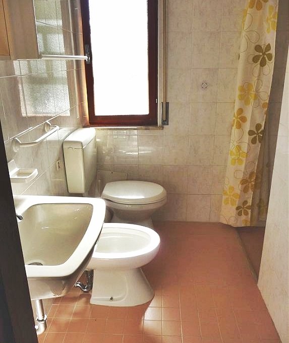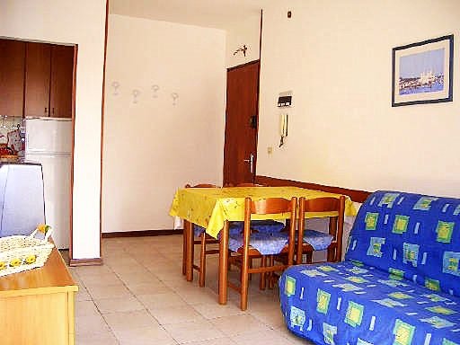Type C: 4/5 persons - Apartment in 2nd floor consists of a double bedroom, a room with a bunk bed, windowed bathroom with shower (shower tray and curtain), living room with single sofa bed, television (Italian channels only) kitchenette with a double door 240 litres refrigerator and washing machine, terrace (on Via Tirrenia) equipped with table and chairs.