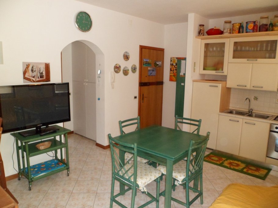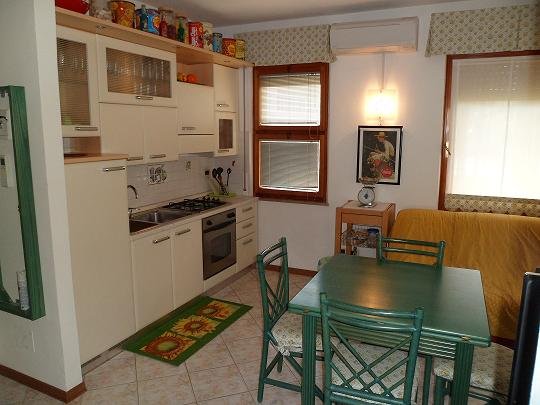 Immeuble de 6 unités au ca 150 mt. de la plage, dans une zone calme et verte, prés du centre de Lignano Pineta. Place pour la voiture, jardin fermé. L’appartement, entièrement restructurée, est situé au premier étage et il est composé d’un séjour avec TV et double divan-lit,kitchenette bien equipé avec lave vaisselle et lave linge, une chambre double, il y a une grande terrsasse, bain avec la douche et la fenetre. Climatisation extra.