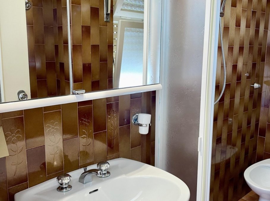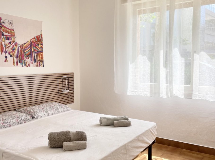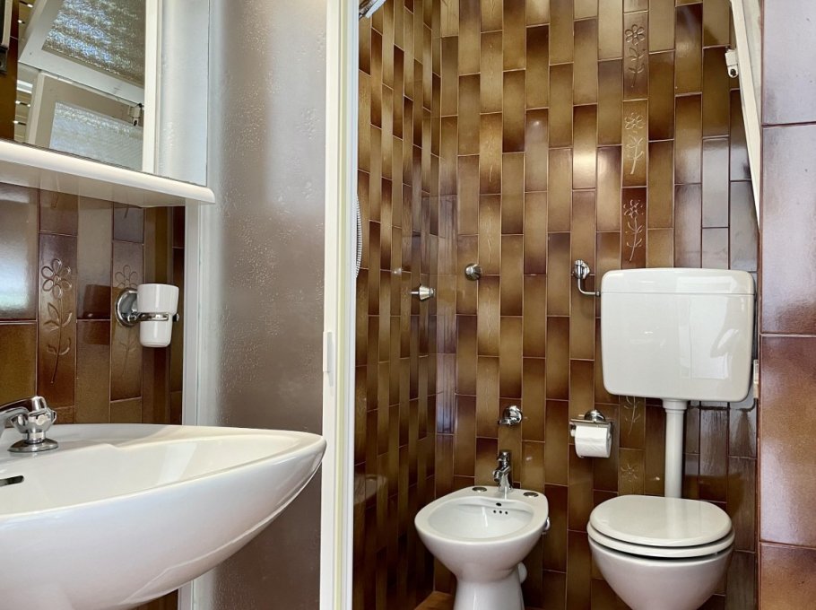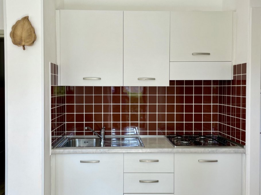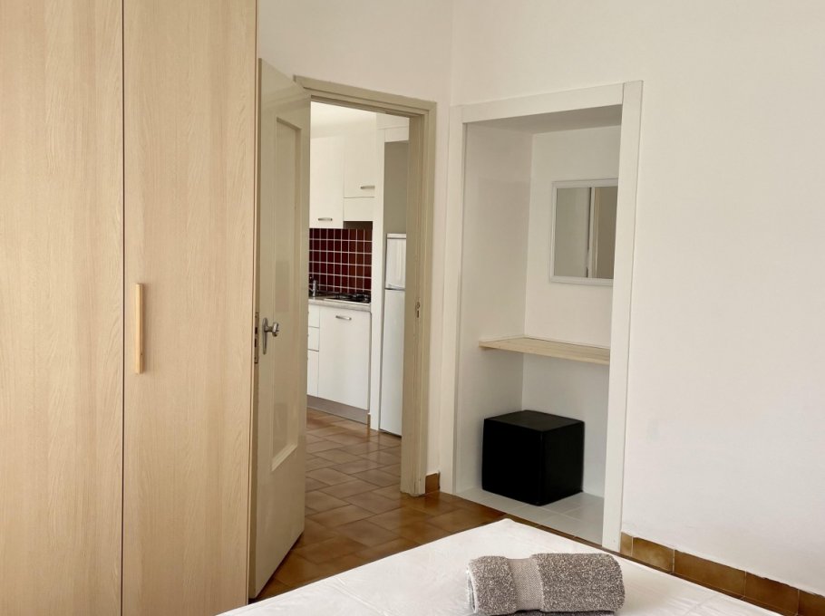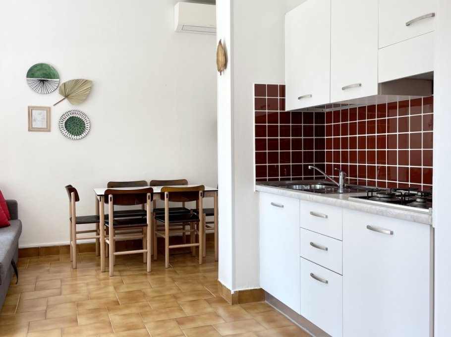 Appartamento al piano terra con aria condizionata composto da soggiorno con divano letto doppio, angolo cottura, tv, camera con letto matrimoniale, cameretta con 2 letti singoli, bagno con doccia e finestra. Patio esterno e parcheggio numerato