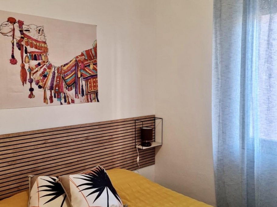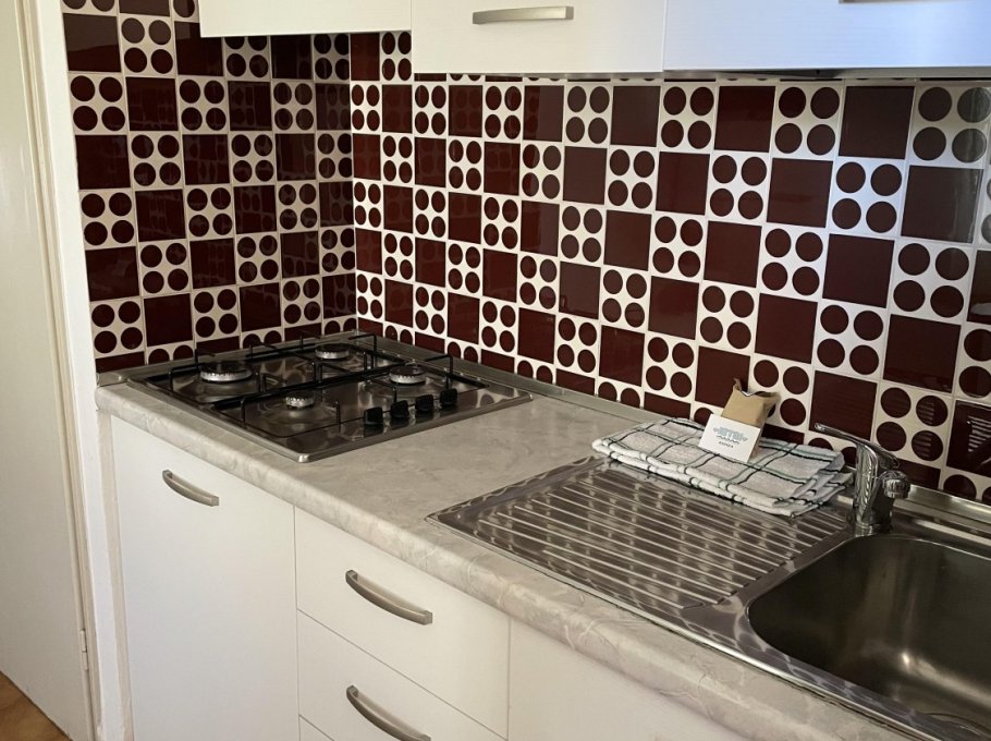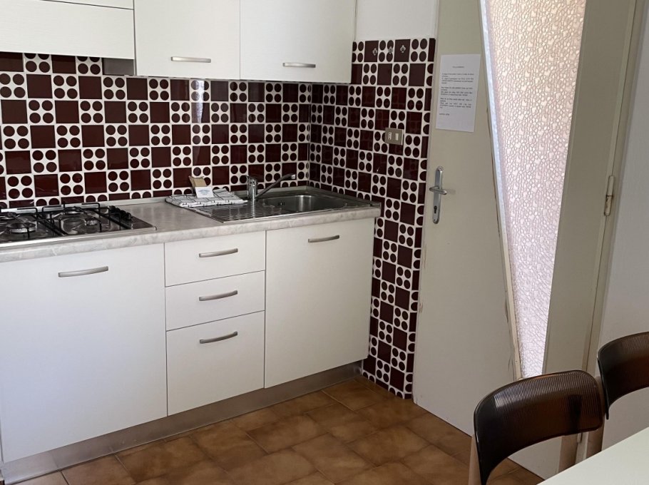 Apartment on 1st floor composed of small living room with cooking are , tv, bedroom with double bed and bunked bed, bathroom with shower, balcony. Patio and numbered parking place. Air conditioned ( on demand € 1 for kwt ).