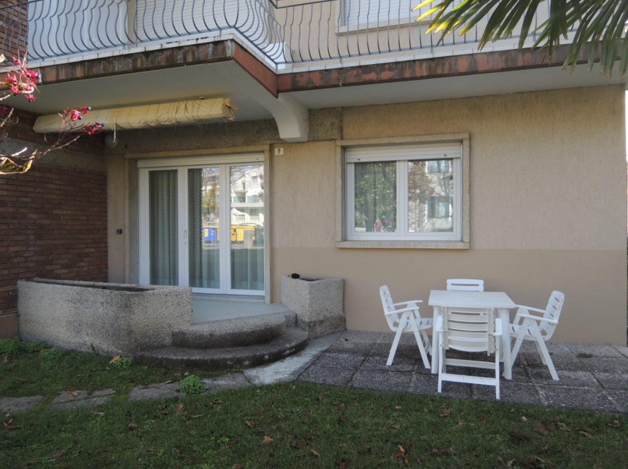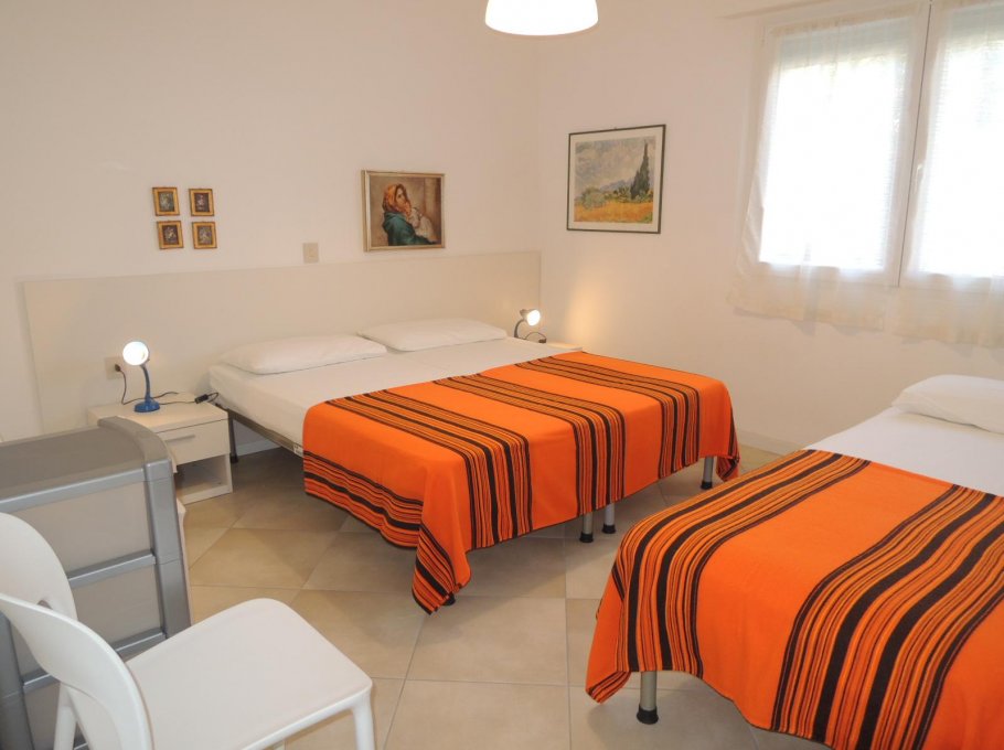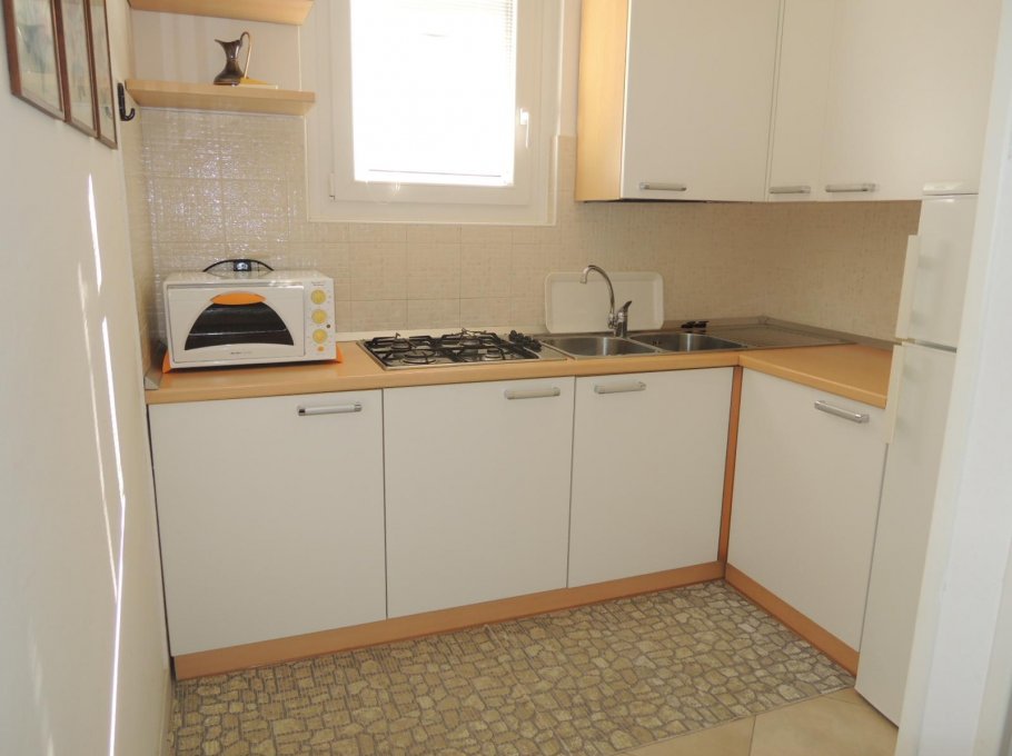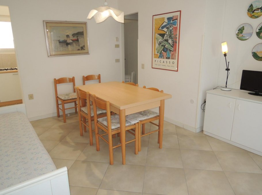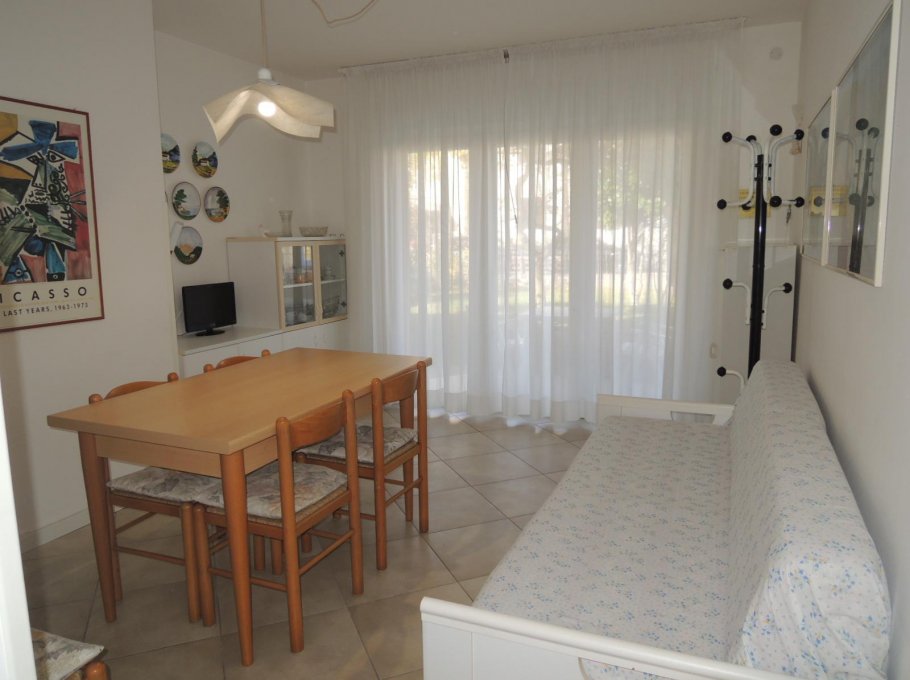 Rif. LILPT - Very comfortable and completely renewed apartment on the ground floor with an equipped outdoor area for exclusive use; it is composed of two bedrooms (one double and one with three beds), living room with sofa bed, kitchenette, bathroom with boxshower and window; the apartment is also equipped with air conditioning (on request with a supplement of € 35,00 per week), washing machine and numbered parking space.